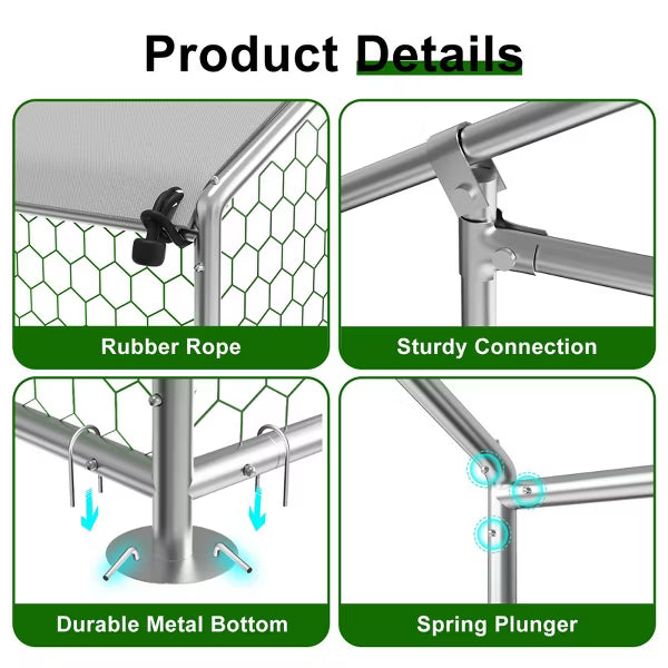- Versatile Multi-Use Design – Use this Metal Chicken Coop for chickens, ducks, rabbits, birds, puppies, cats, and garden crops.