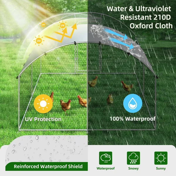 Give your animals the safe, secure outdoor space they need with this Heavy-Duty Metal Chicken Coop, designed for lasting durability, weather protection, and predator-proof performance. Built with a fully galvanised steel frame, waterproof roof, and strong PVC-coated hexagonal wire mesh, this Metal Chicken Coop offers outstanding strength for chickens, ducks, rabbits, dogs, hens, birds, and more.