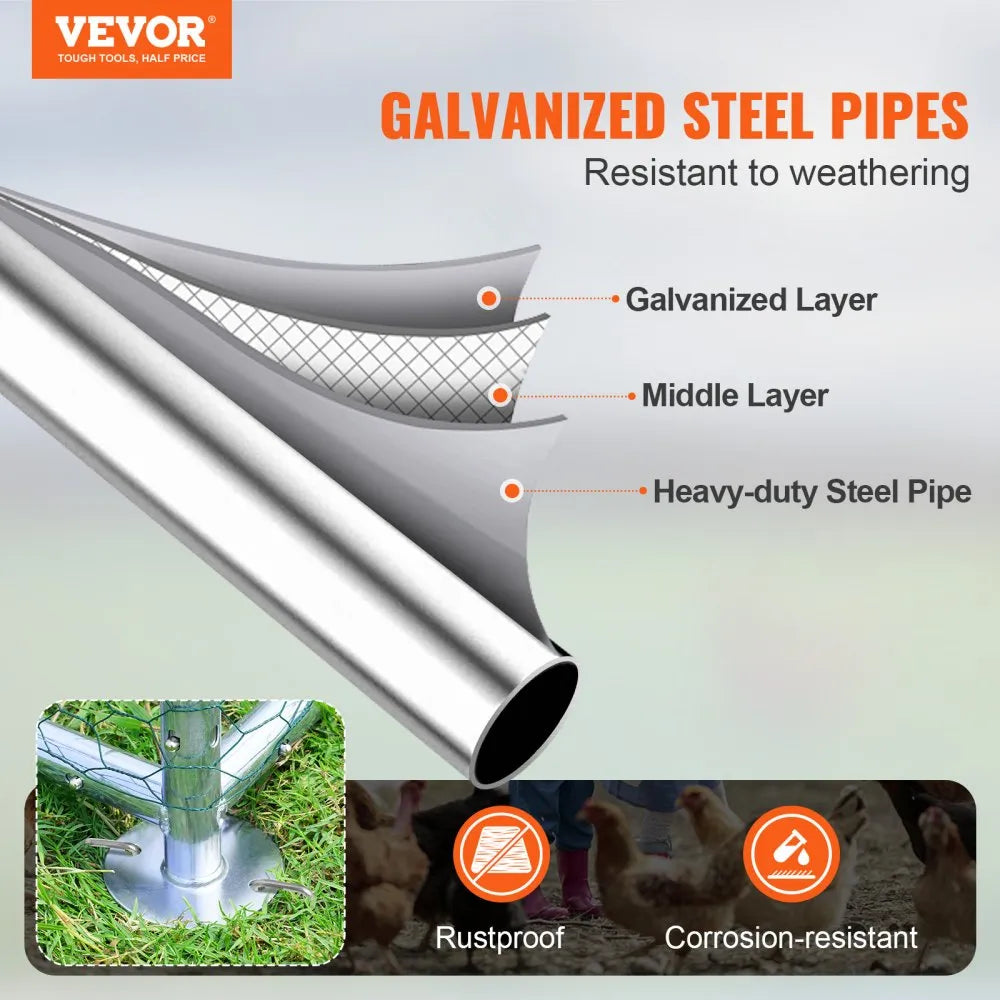 - Heavy-Duty Steel Frame – The 1" (25mm) thick steel pipes reinforce the Large Metal Chicken Coop for maximum stability and wind resistance.