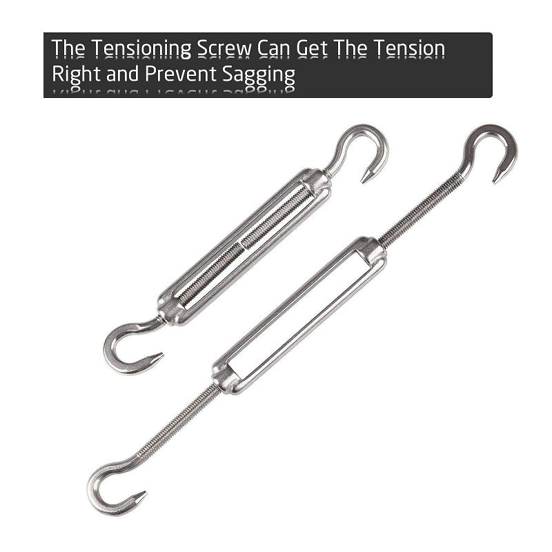 - Adjustable Turnbuckles to create extra tension to make your sails get tight in installation. You can choose how far your sail shade is from the wall/ post/ point to which it is fixed, length from 5" to 7".