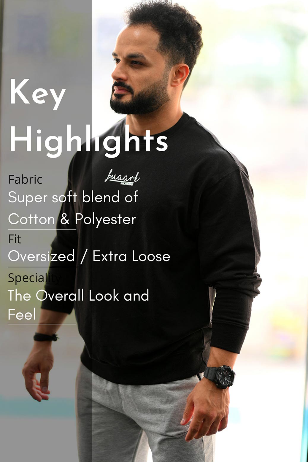 Black Oversized Sweatshirt with Full-Sleeve Arms: Elevate your wardrobe with our Black Oversized Sweatshirt, featuring full-sleeve arms for added warmth and style. Designed for ultimate comfort, this sweatshirt offers a relaxed, oversized fit that’s perfect for layering during cooler months or wearing on its own for a laid-back look. The deep black color adds a touch of sophistication, making it easy to pair with jeans, leggings, or joggers. Whether you’re running errands, heading out with friends, or lounging at home, this versatile sweatshirt is a must-have staple for any casual wardrobe.