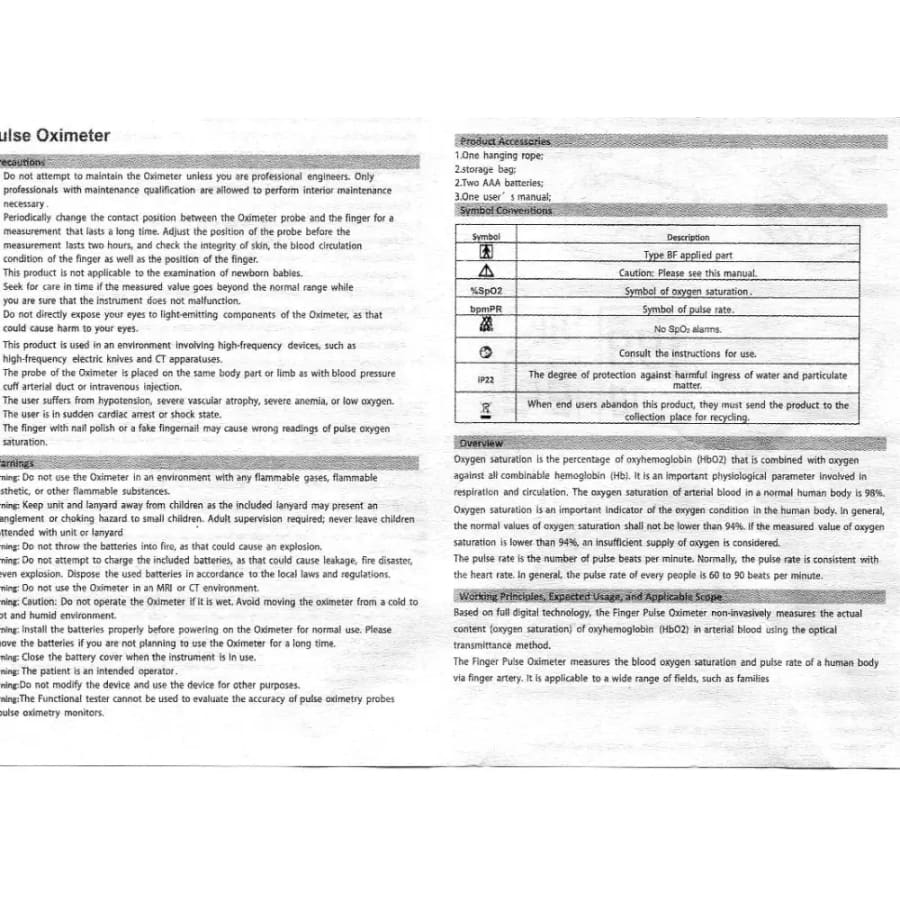 Blood Oxygen Saturation Range: 70% – 99% (± 2%)