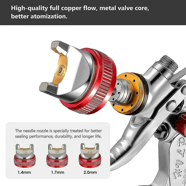 - 3 Stainless Steel Nozzles – Includes 1.4mm, 1.7mm, and 2.0mm tips for primers, base coats, and topcoats.