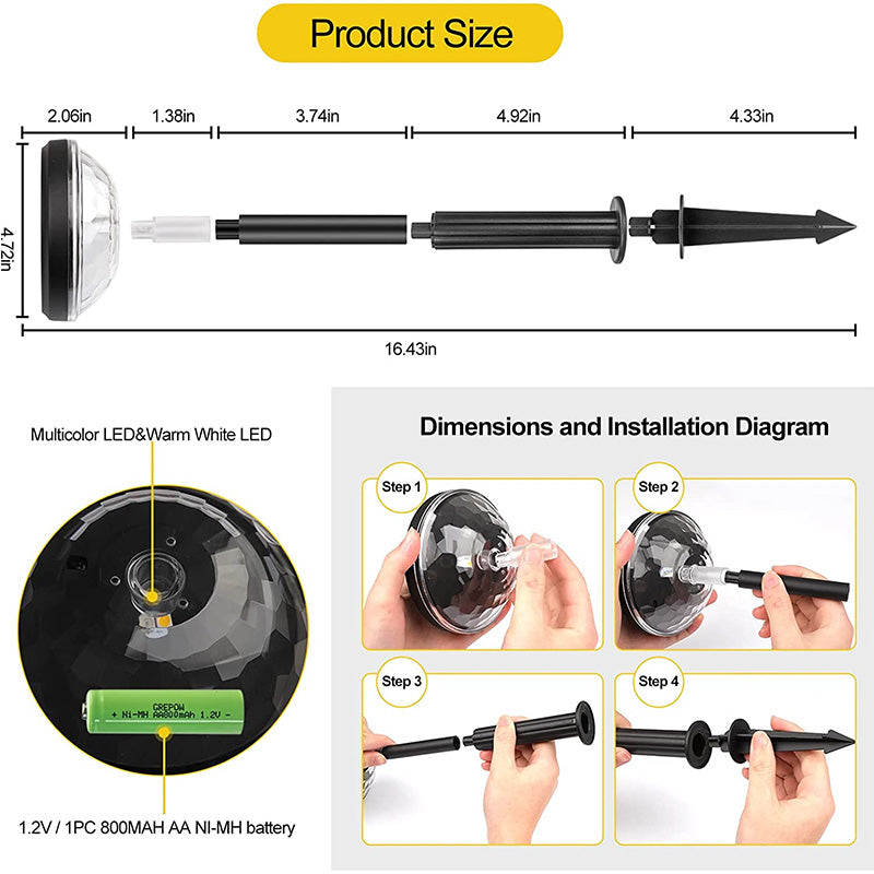Dual Lighting Modes: Our Dikesitu solar garden lights feature two lighting modes – color changing mode and warm white mode. Whether you're decorating for Christmas or Halloween, or simply illuminating your landscape, you have the flexibility to switch between these modes as per your preference.