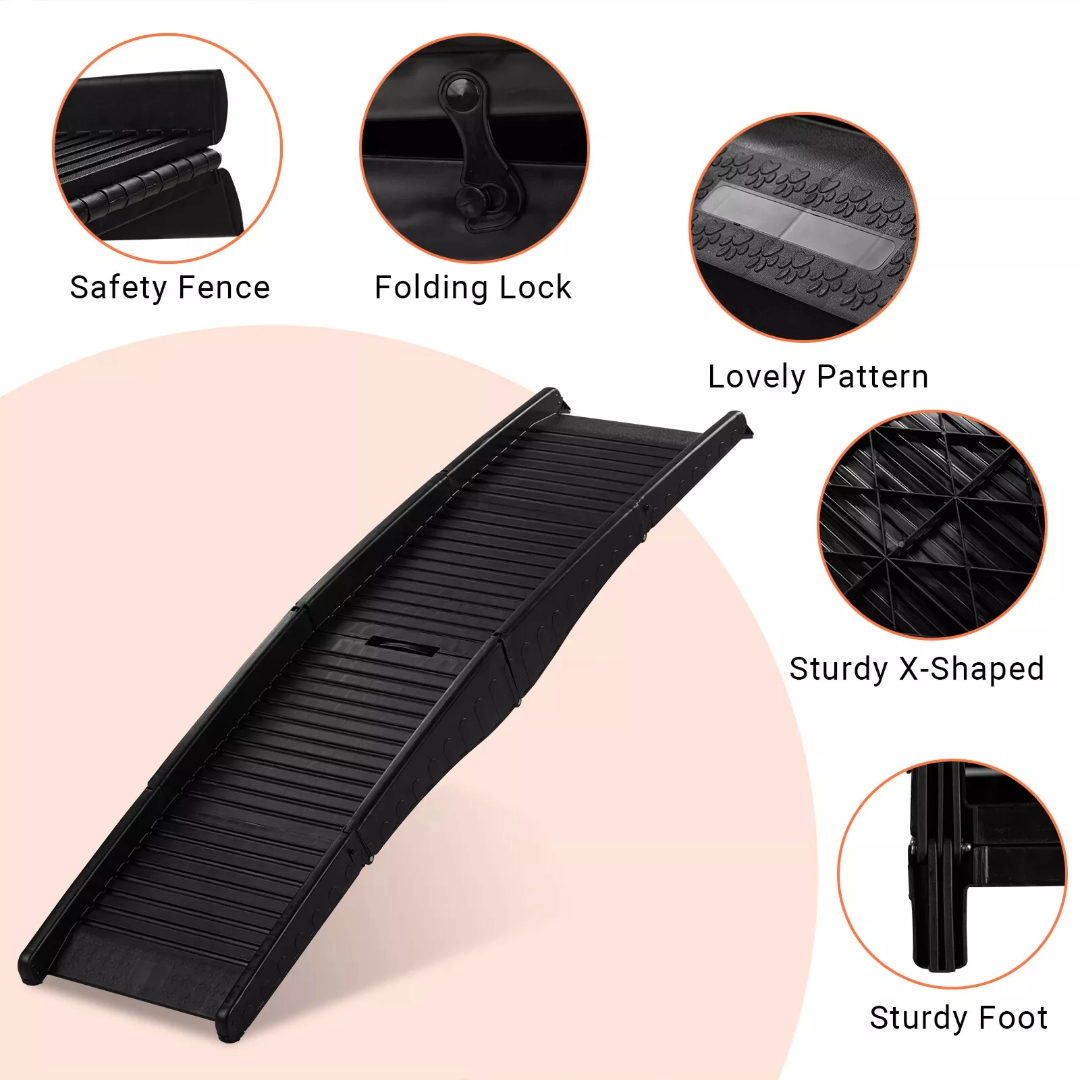 - Foldable & Space-Saving Design: The Portable Dog Ramp folds easily for compact storage in your car or home. Lightweight construction makes the Portable Dog Ramp easy to carry and transport.