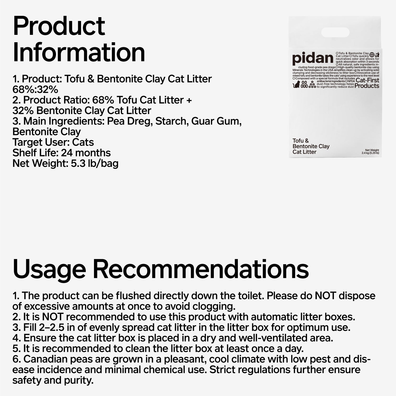 PIDAN Signature Tofu Blend Cat Litter combines tofu with a small amount of bentonite to improve clumping stability while keeping daily scooping clean and easy. It locks in moisture quickly, helps control odours, and is designed to reduce dust and tracking—ideal for busy homes.