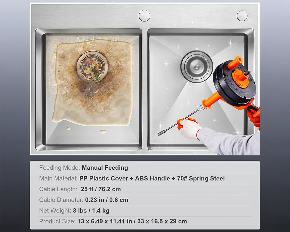 Drain Cleaner – 25ft Manual Feed Pipe Snake for Toilets, Sinks & Bathtubs