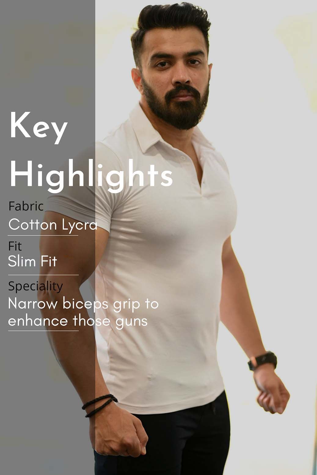 Keep it fresh and stylish with the Polo T-shirt in White. Offering a slim fit, this t-shirt creates a clean, sharp look while accentuating your physique. The slightly narrow biceps grip defines your arms, and the average torso length ensures that the fit is comfortable and flattering. Made from soft, breathable fabric, this polo is perfect for casual days, weekend outings, or even a more relaxed office look. The white color is timeless and versatile, making it easy to match with any bottom, from jeans to shorts.