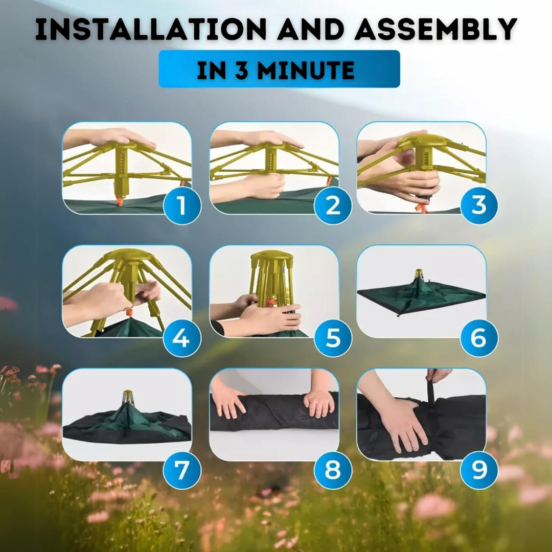 - Quick Automatic Setup: Optimized with spring support, this tent pops up in seconds for easy assembly and takedown, saving time on outdoor setups.