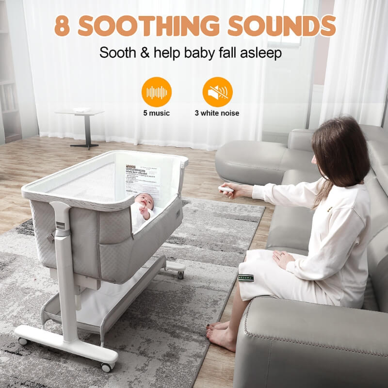 - Electric Bassinet: VaVaSoo automatic bassinet comes equipped with a remote control, offering 2 stable swinging speed motions to simulate a mother's gentle embrace. The smart crib also includes 5 sleep-inducing melodies and 3 nature sounds to soothe and comfort the baby, helping them fall asleep. It's not only suitable for nighttime but also perfect for your baby's daytime naps, giving you more time to enjoy your day.