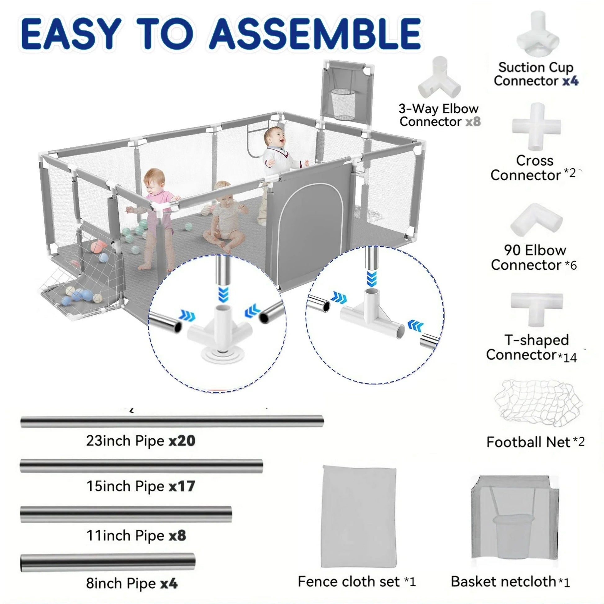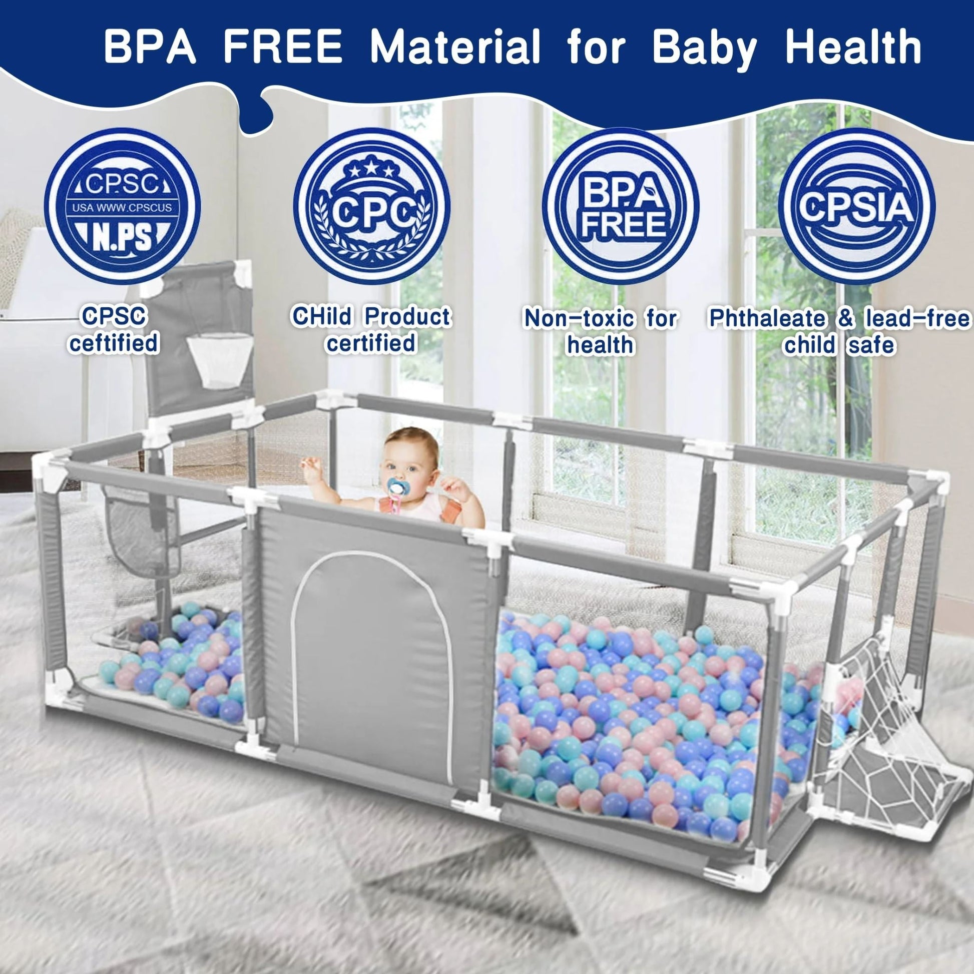 Extra Large PlayPen for Babies and Toddlers,Sturdy Toddler Ball Pit Playpen with Basketball Hoop and Football Net Indoor Safty Infant Play Yard for Baby.