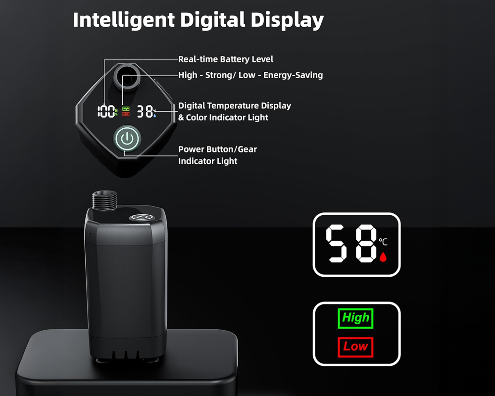 - Smart Display: Monitor battery level and water temperature easily for simple, controlled operation.