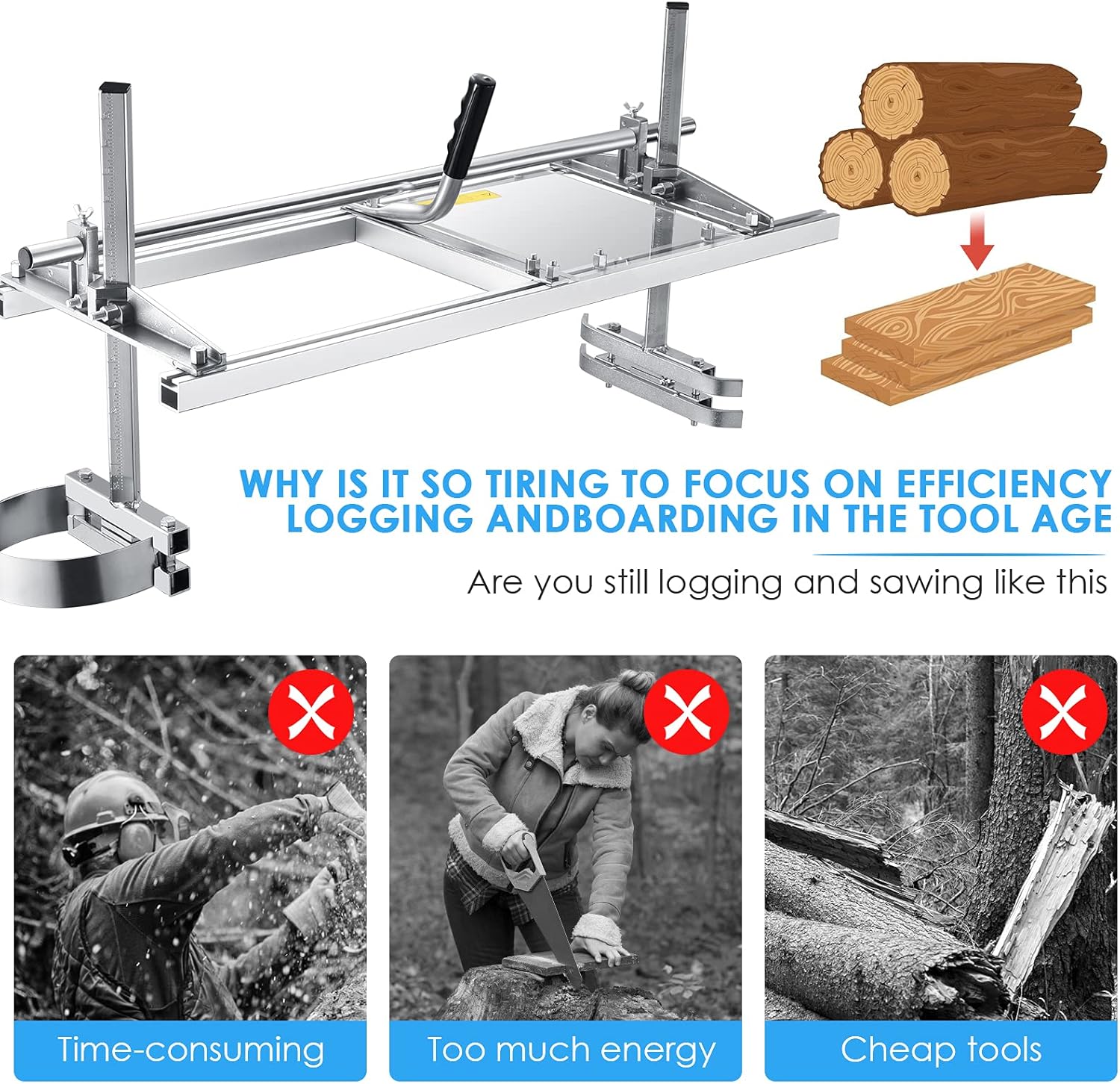 Easy to Assemble and Transport: The Chainsaw Mill comes with all necessary mounting parts, tools, and an English instruction manual included in the package kit, making assembly straightforward. Despite its robust construction, the Portable Sawmill is easy to transport and carry.