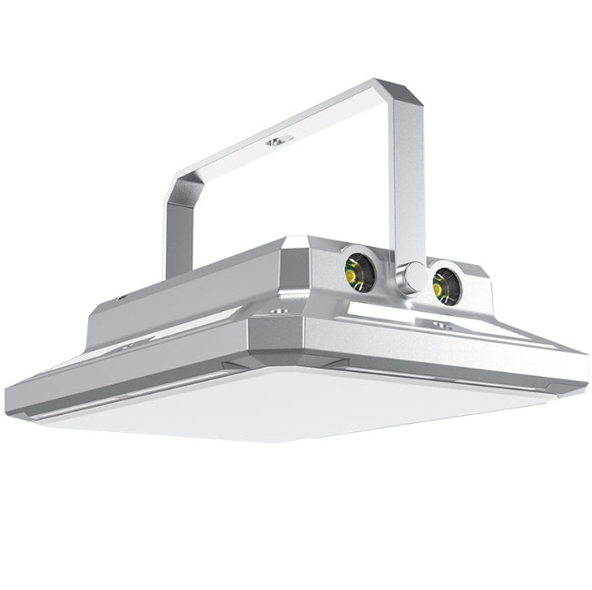 The light emits from the front, back, and sides. The front features 96 high-brightness LEDs (48white+48warm), the back has 12 white LEDs and 6 red LEDs, and the sides include 2 XPE LEDs for flashlight functionality.