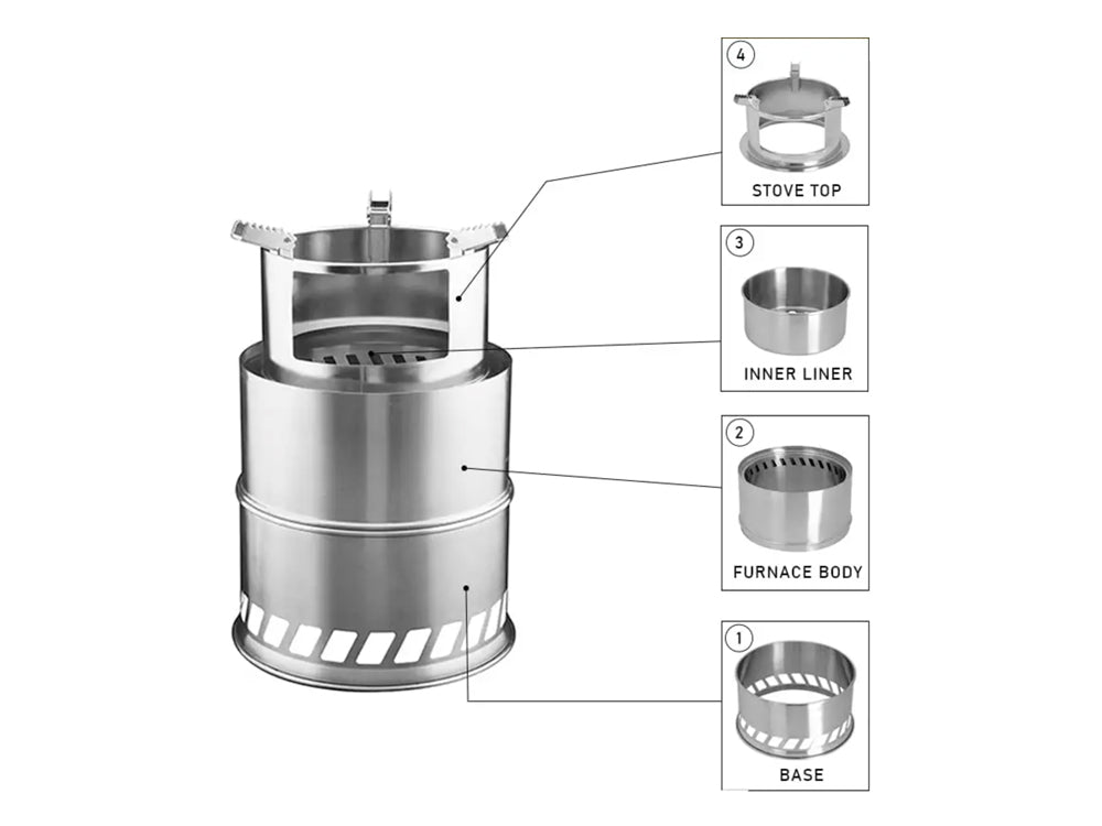 With a wide opening, the wood stove makes it easy to add wood, and its double-wall structure creates clean gasification and secondary combustion. The air vents near the bottom help improve air circulation, ensuring efficient burning with less smoke. The stove's eco-friendliness is further enhanced by the fact that it can use unlimited free fuels such as twigs, leaves, branches, and wood as fuel, eliminating the need to spend money on gas canisters and reducing your carbon footprint. You can even flip the tray to hold solid alcohol fuel.
