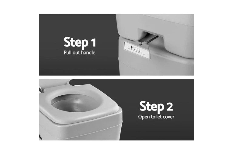 When you need to go, you need a reliable Portable Toilet. This Camping Toilet is designed to give you comfort, hygiene, and convenience anywhere — whether you’re camping, caravanning, fishing, boating, or just need an Emergency Toilet for backup. With a 20L waste tank and a 12L fresh water tank providing up to 50 flushes, this Portable Toilet ensures worry-free use. Lightweight, sturdy, and completely self-contained, this Outdoor Toilet is the best solution for travel, off-road trips, and outdoor living.