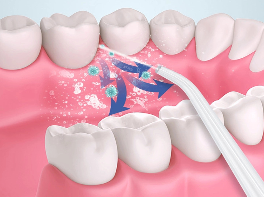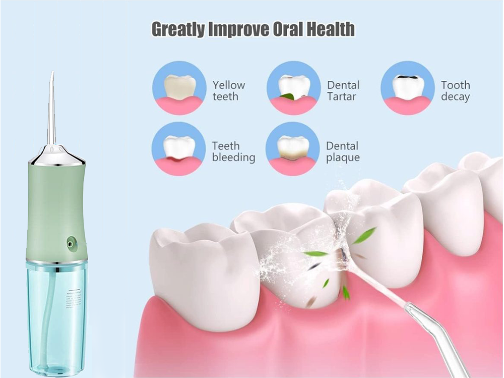 Electric water flosser effectively cleans between teeth and gums
