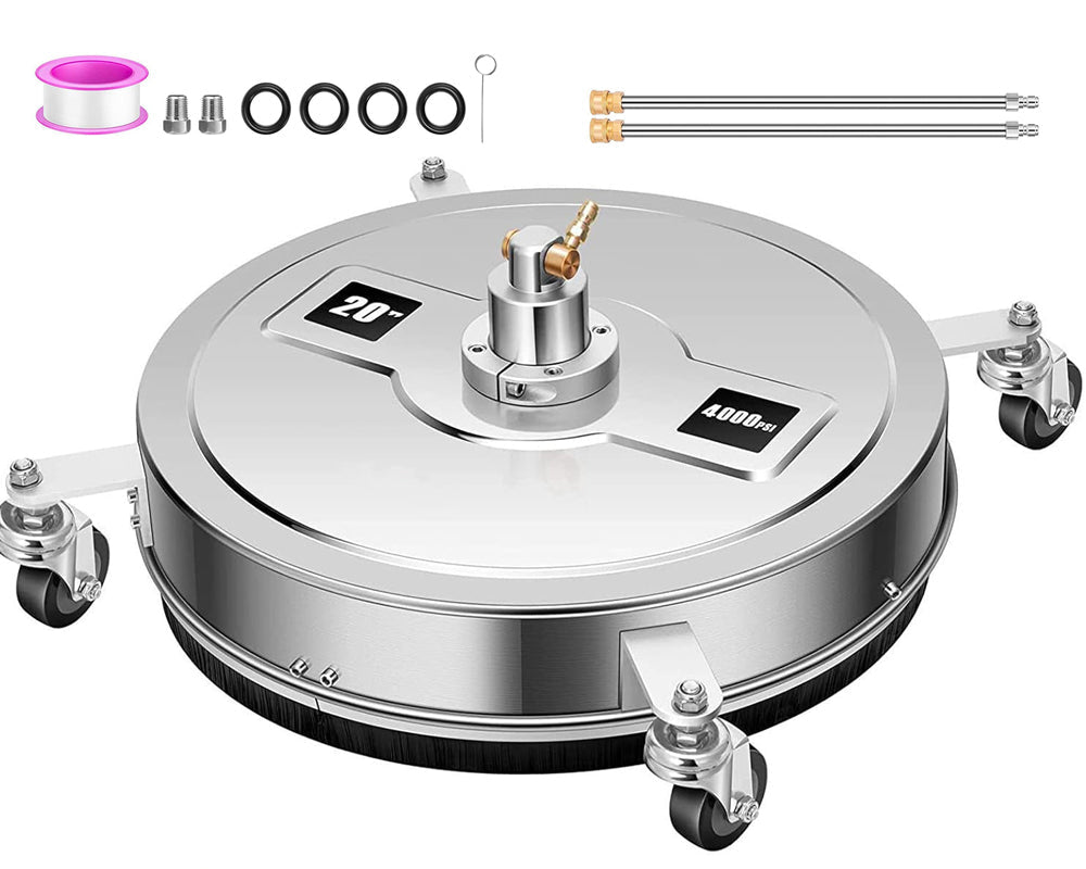 20" Pressure Washer Surface Cleaner, 1/4" Quick Connector, Attachments with 2 Extensions, 2 Replacement Nozzles, 4000 PSI Max Pressure, 50cm/20in