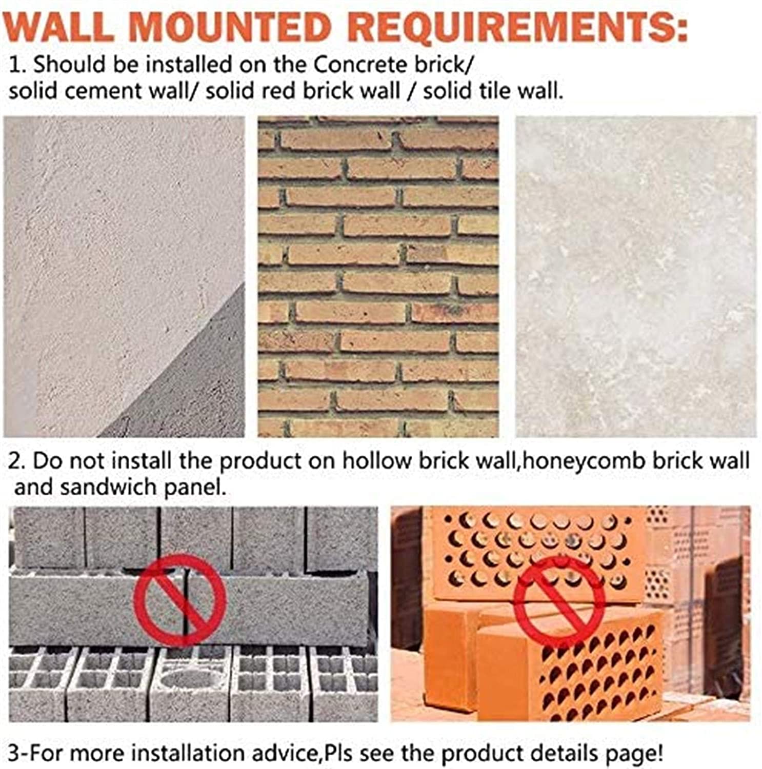 - Wall Mounted Requirements: Suitable for concrete, brick, or cinder block walls; includes full installation instructions and hardware (not suitable for drywall or plaster walls).