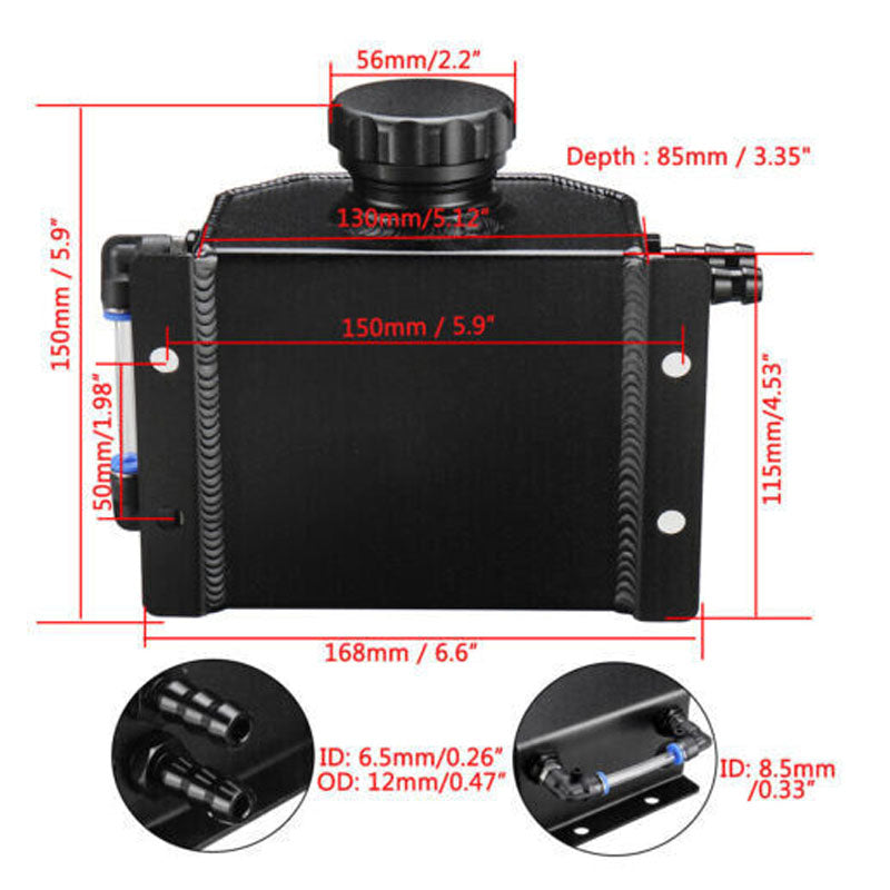 Universal 1L Coolant Overflow Tank, Aluminum Coolant Radiator Tank,Reservoir Expansion,Black