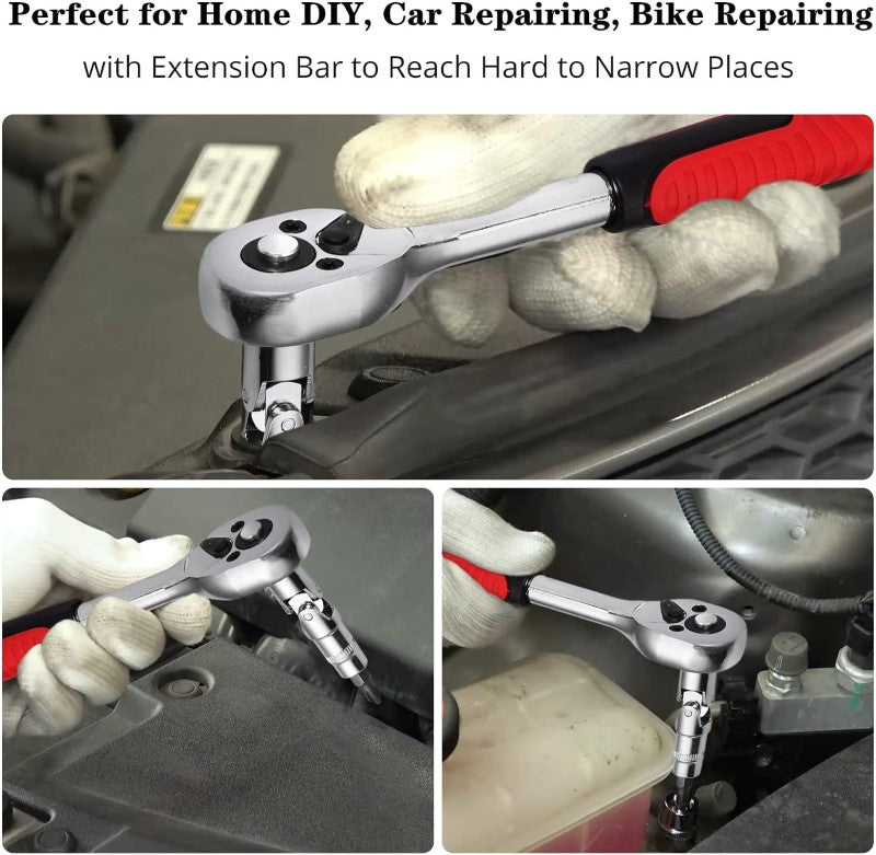 Introducing our 46-Piece Socket Ratchet Wrench Set: the ultimate solution for your car repairing needs, bundled with precision, durability, and convenience in one sleek package.