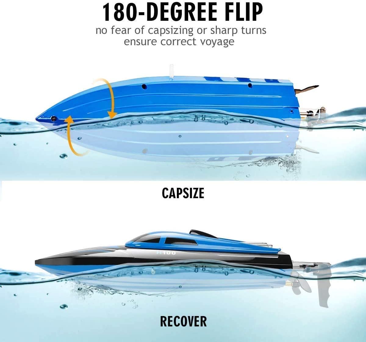 Automatically flipping means that it can do 180 degree turnover action when it capsizes.