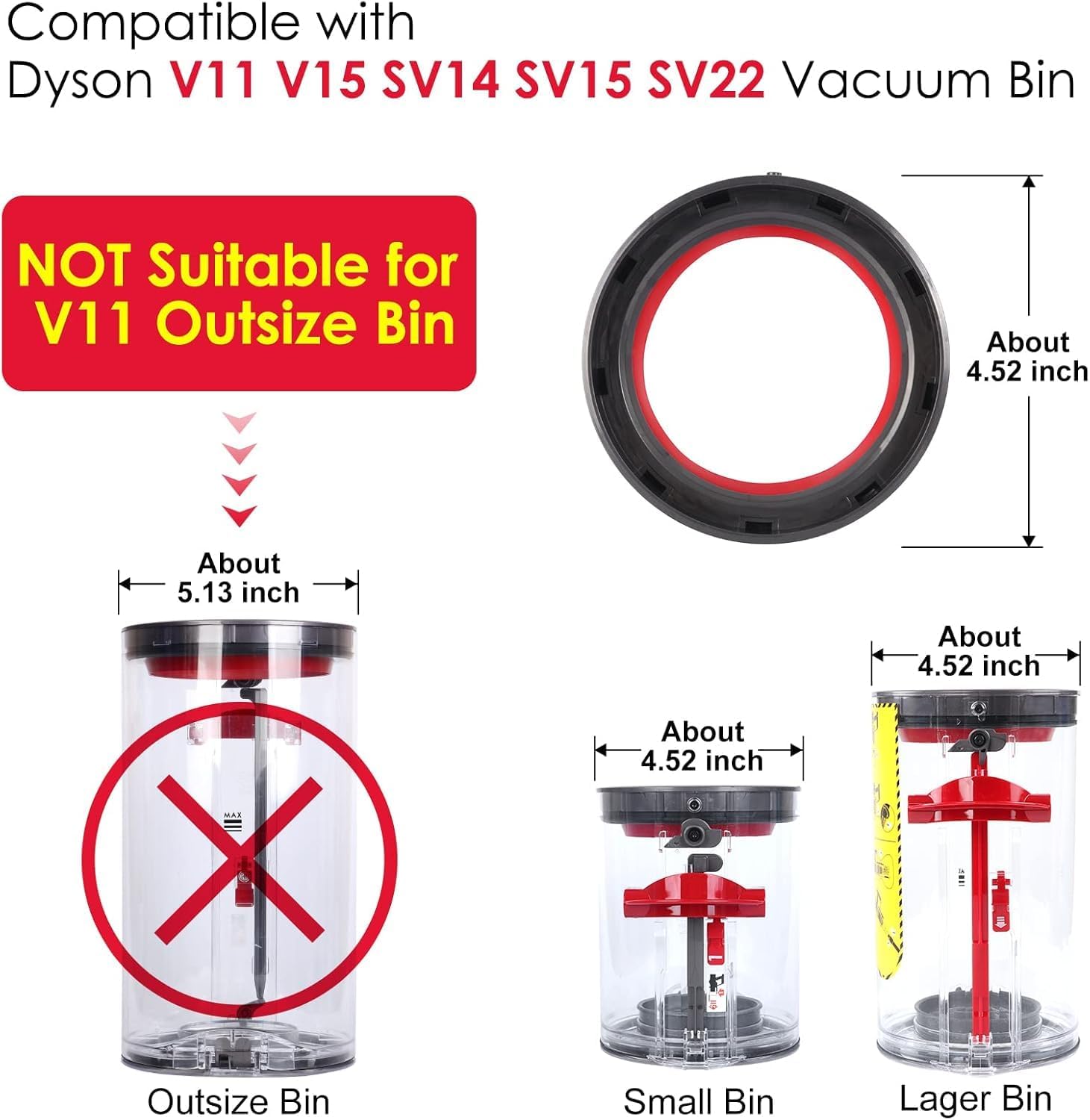 Note: This aftermarket Dust Bin Top Fixed Sealing Ring is specifically designed for Dyson V11, V15, SV14, SV15, and SV22 models to ensure optimal performance and long-lasting durability.
