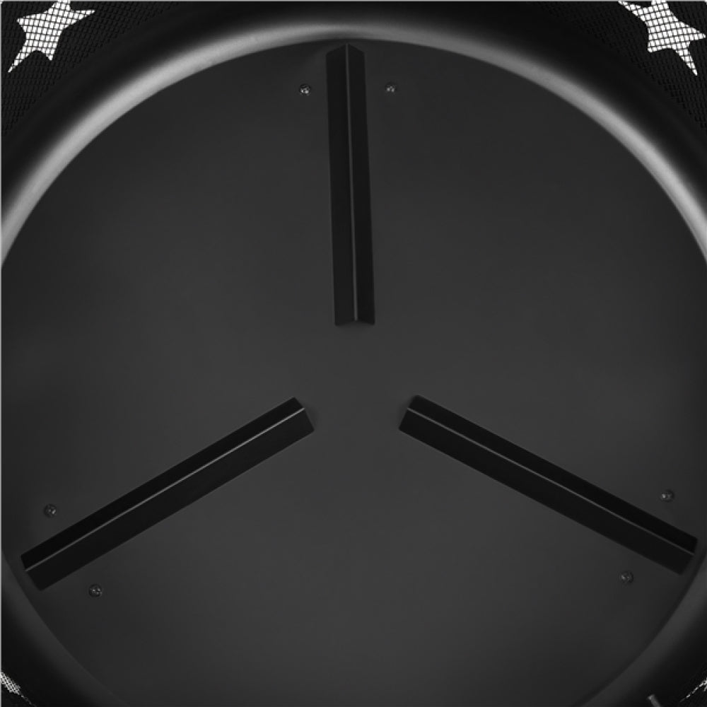 Effortlessly add a focal point or a new cozy go-to spot to your patio with this Round Fire Pit with Moon & Star. With a circular silhouette and the moon and star cutouts, this outdoor fire pit can instantly introduce both style and function to any yard/porch/patio. Constructed of solid metal and finished with heat-resistant coating, this outdoor fireplace features a deep fire bowl for accommodating ample firewood. The outer ring, spark screen and fire poker ensure added safety. The safety ring doubles as a handle, making this firepit easy to move. Simple assembly is required.