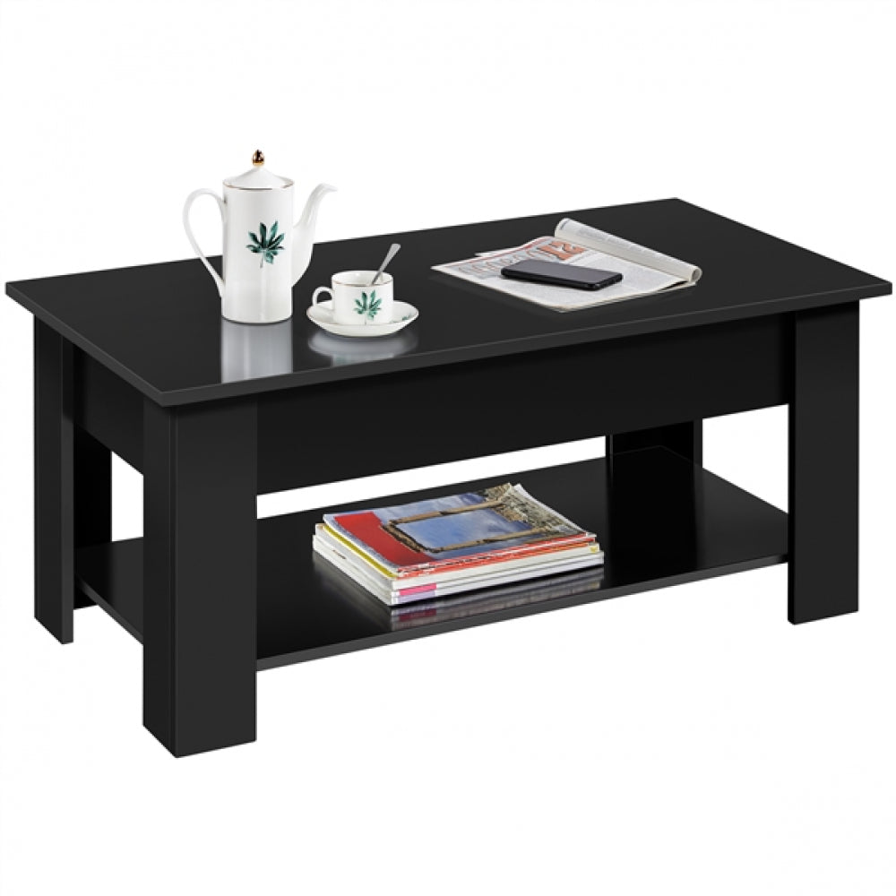 With the clever lift-top design and the modern look, this coffee table doubles up on form and function in your living room. The lift top can be easily adjusted to a suitable and comfortable height for writing or dining while sitting on the couch. Under the tabletop, a large storage compartment and generously-sized open shelf keep your everyday items and living room essentials right at hand and organized. Crafted of CARB P2 MDF with heat- and water-resistant finish, this lift-top coffee table is a piece of worth investing furniture for small apartments, dorms, lofts, dens, and other space-challenged rooms. Simple assembly is required.