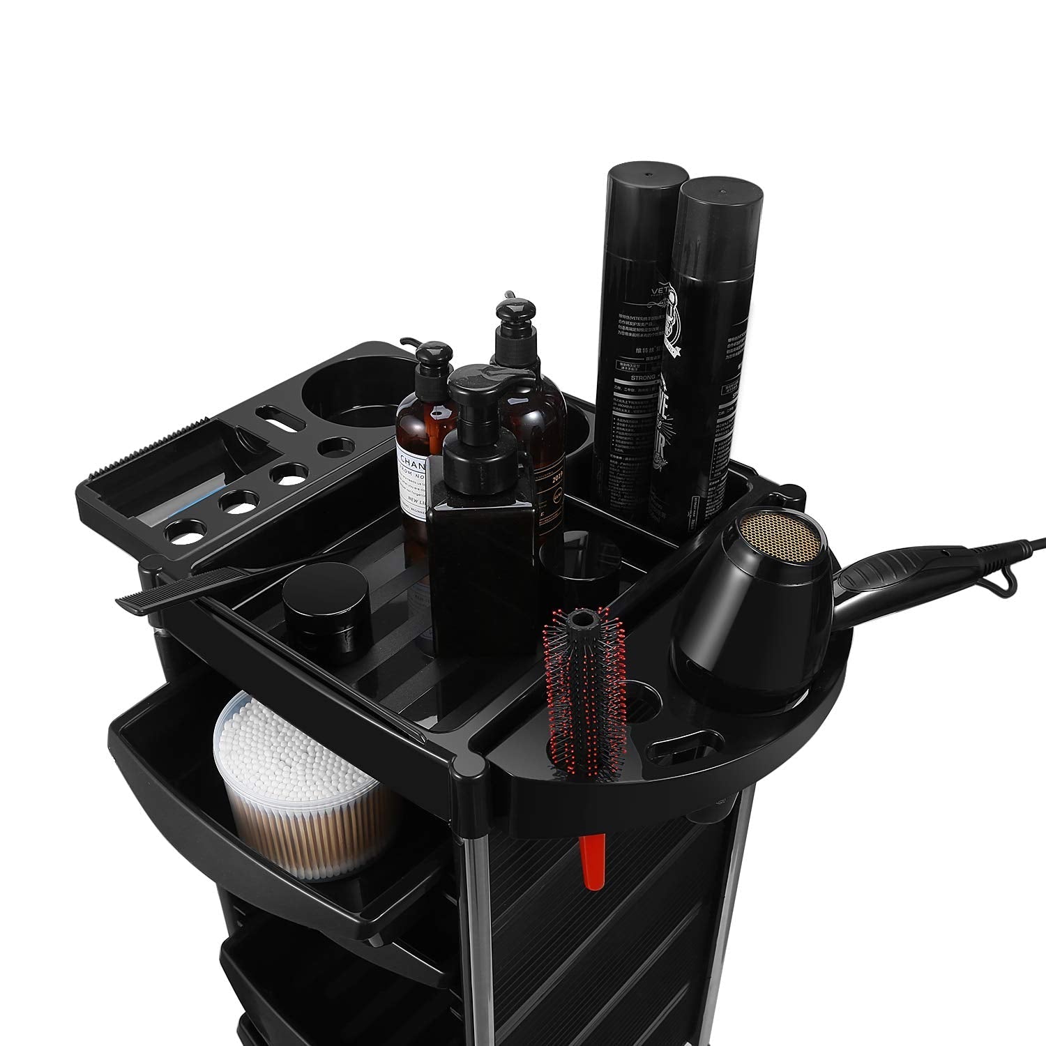 This trolley can be use as makeup trolley, hair stylist rolling cart trolley, hairdresser cart trolley, salon trolley, designed especially for salon accessories, hair salons and barber shops, this wheeled cart conveniently stores, organizes, and transports your utilities and supplies