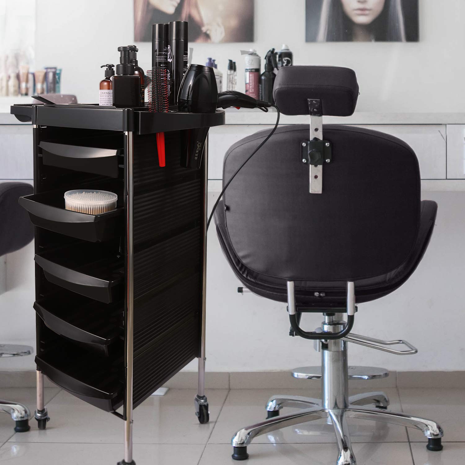 - 1 x Salon Beauty Trolley Cart, Spa Utility Carts, Hairdresser Maintenance Storage System Organizer with 5 Drawers, Service Instrument Tray, Makeup Equipment Supplies Accessory Tool Holder Station