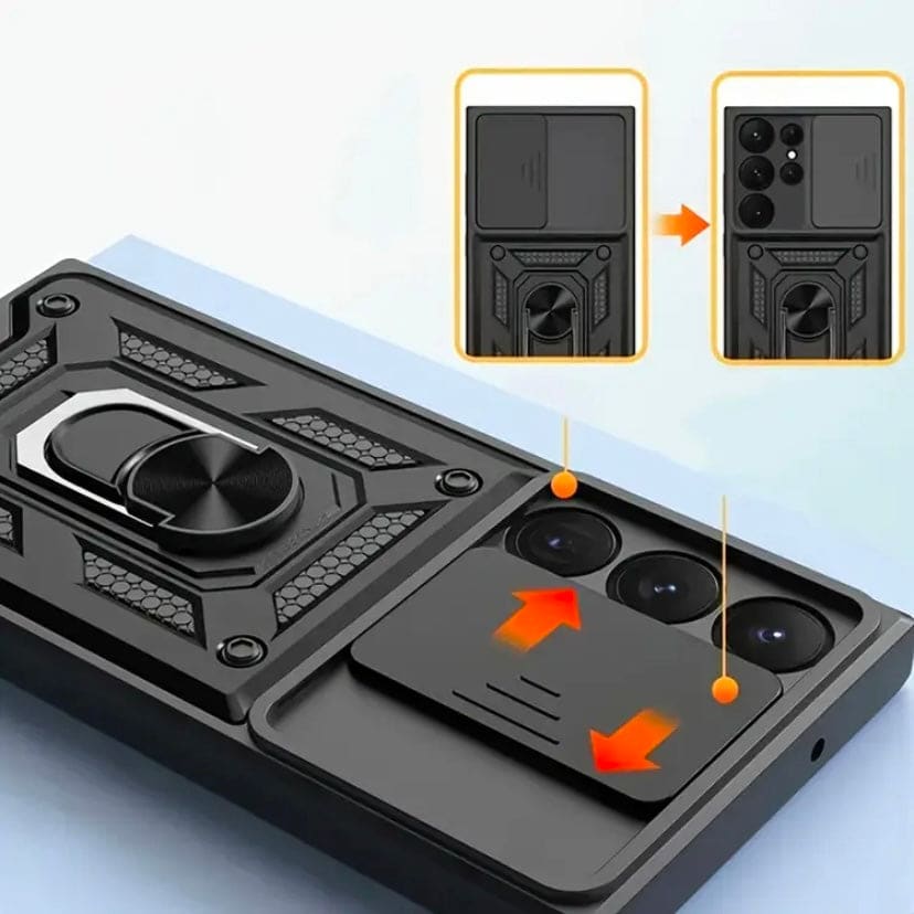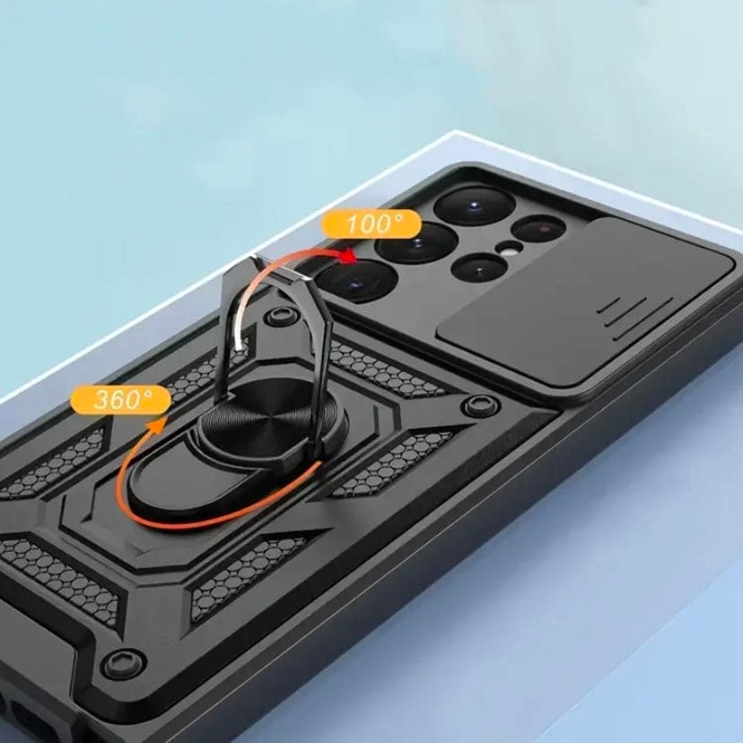 Hard rugged case with magnetic back to attach to your phone holder and a fold out stand when watching videos or making video calls.