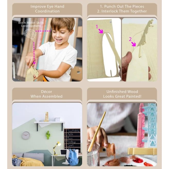 The construction of 3D puzzles helps to develop skills like eye coordination, problem-solving & shape recognition, while encouraging creativity.