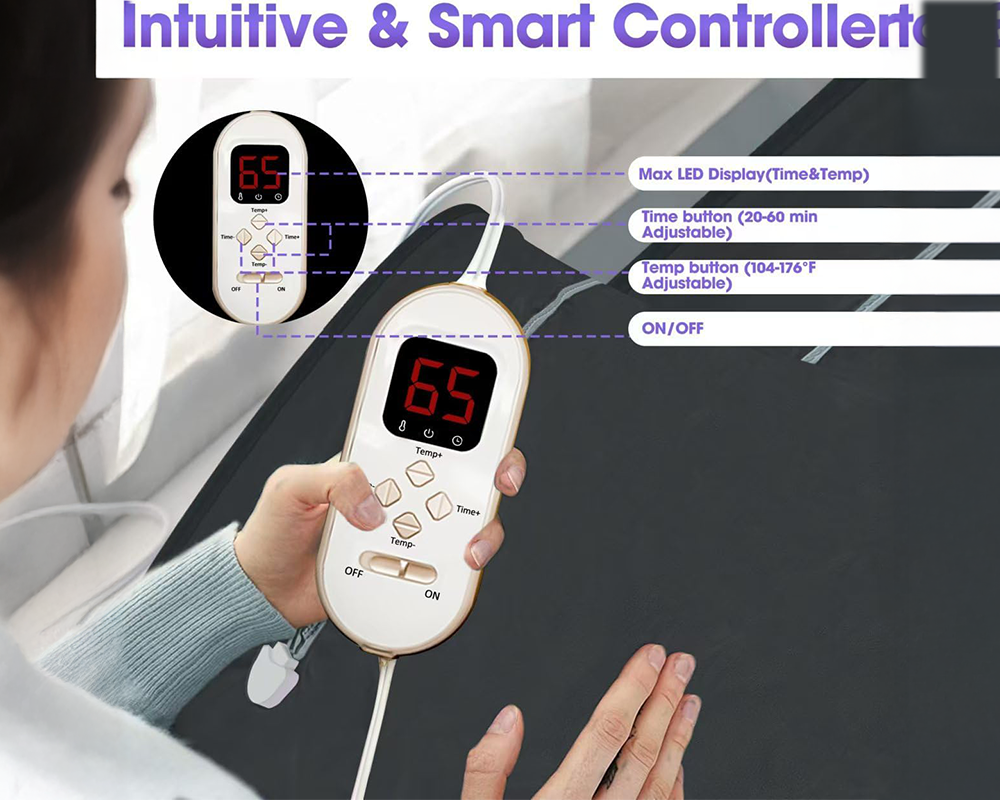 - Adjustable Temperature: Heat from 104F – 176F allows comfort for sensitive skin while using this infrared sauna blanket for detox and portable home sauna sessions.