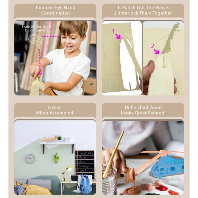 This 79 piece Sea Knight wood craft construction kit is a fun & educational DIY 3D puzzle to build & paint or keep in natural wood.