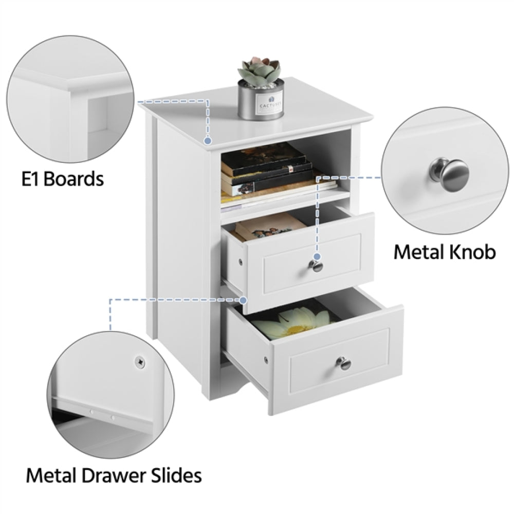 Looking for a selected while tasteful and practical end table? Look at here, this 2pcs end table set is designed for satisfying all your needs. Made of selected MDF material with water- and scratch-proof coating, this end table is durable and stable for long-term use and can be kept as good as new after long-time usage. The provided 2 spacious drawers and 1 storage shelf allow you to keep your different items orderly and separately. This pair of nightstands is designed in a simple but chic style, which can harmoniously integrate into various room decors and serves as an elegant highlight of the space.