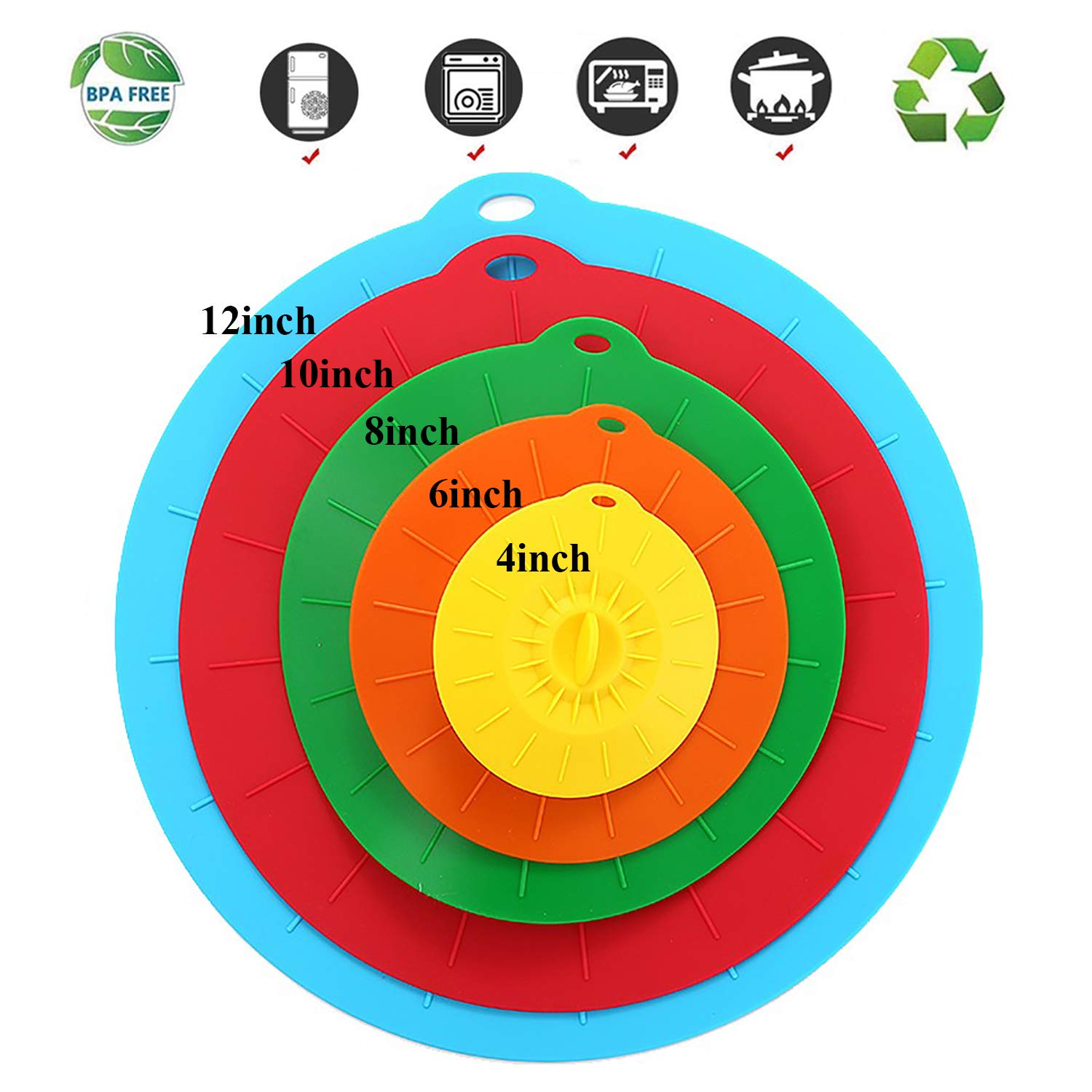 - 1x Silicone Suction Lids, Set of 5 Colorful Food Covers for Bowls, Pots, Pans, and Mugs