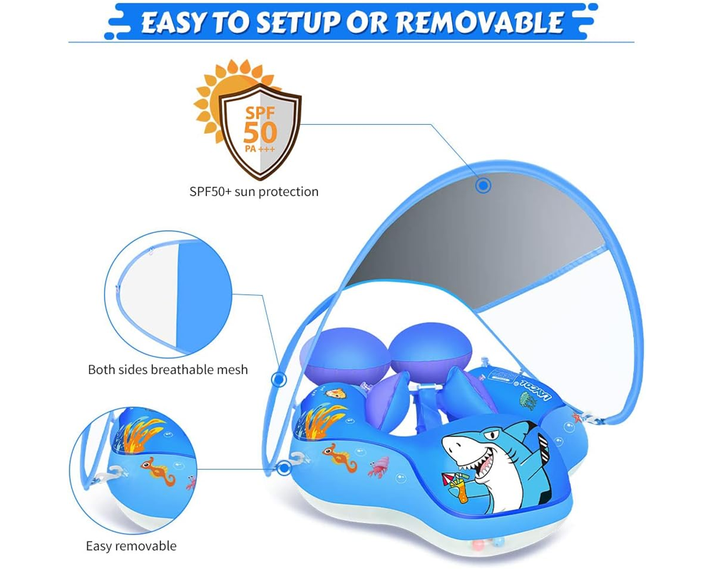 - UPF50+ Sun Canopy: Provides shade and protection with the Inflatable Swimming Float for little ones.