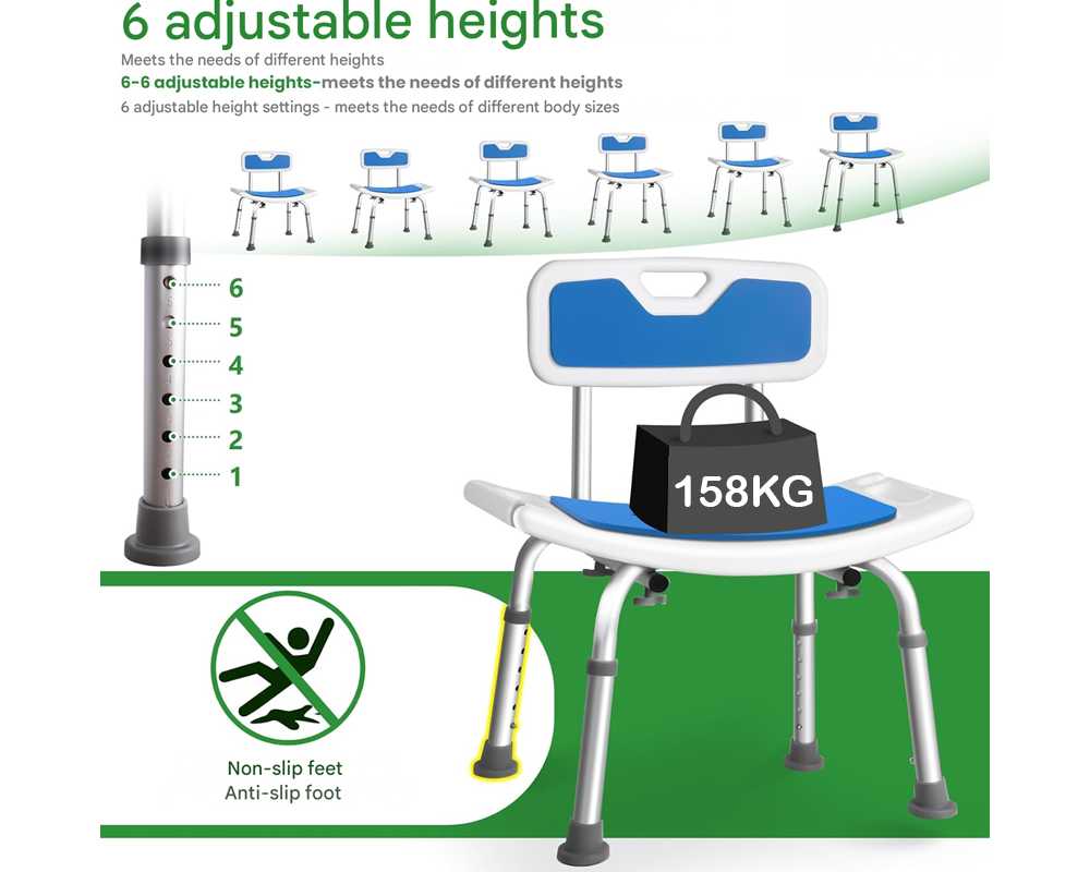 - Non-Slip and Stable: Designed with anti-slip feet and a sturdy frame to provide Shower Chair maximum stability in wet Shower Tool environments.