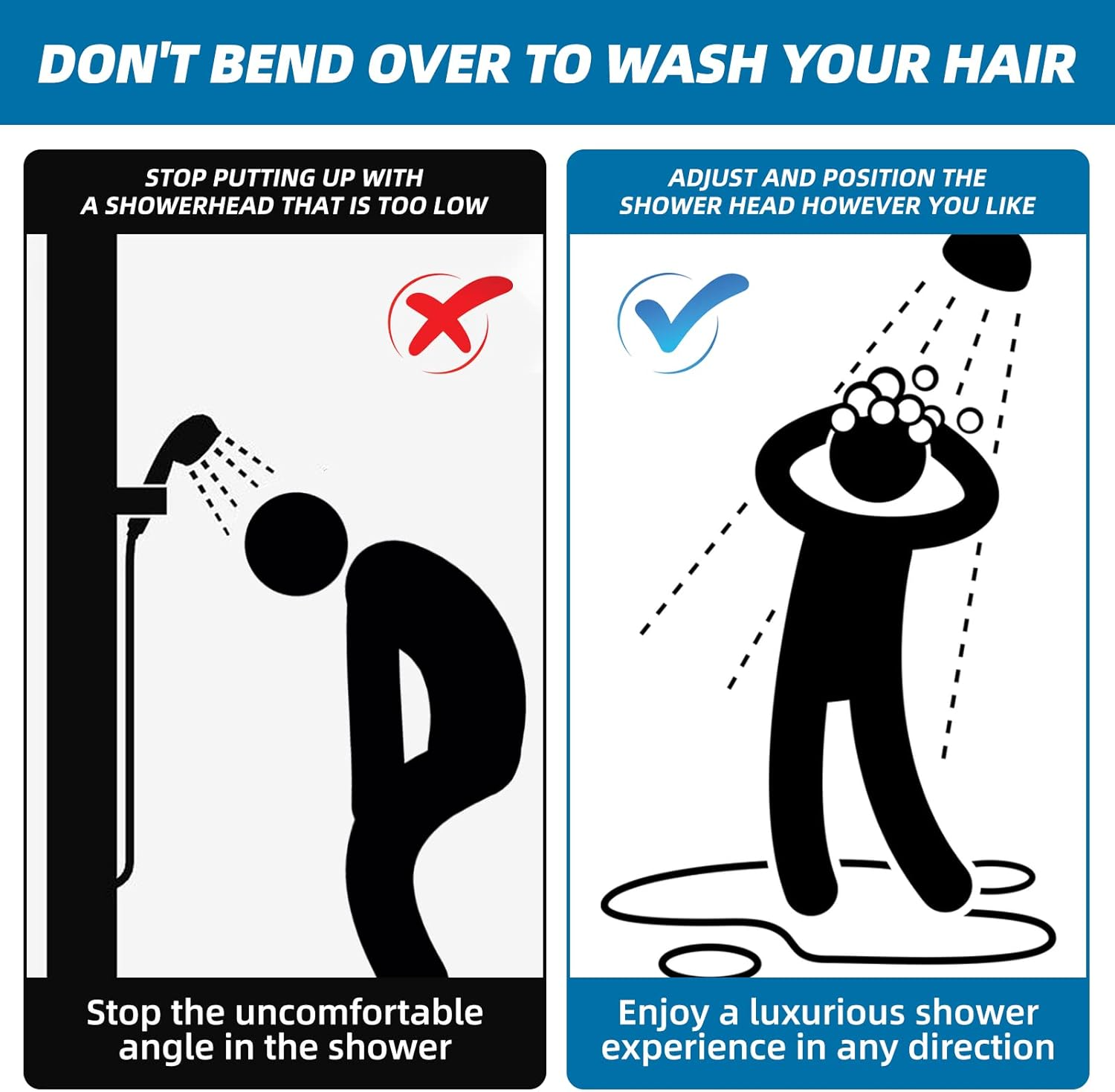 - Adjustable height and angle provide a comfortable and luxurious shower experience.