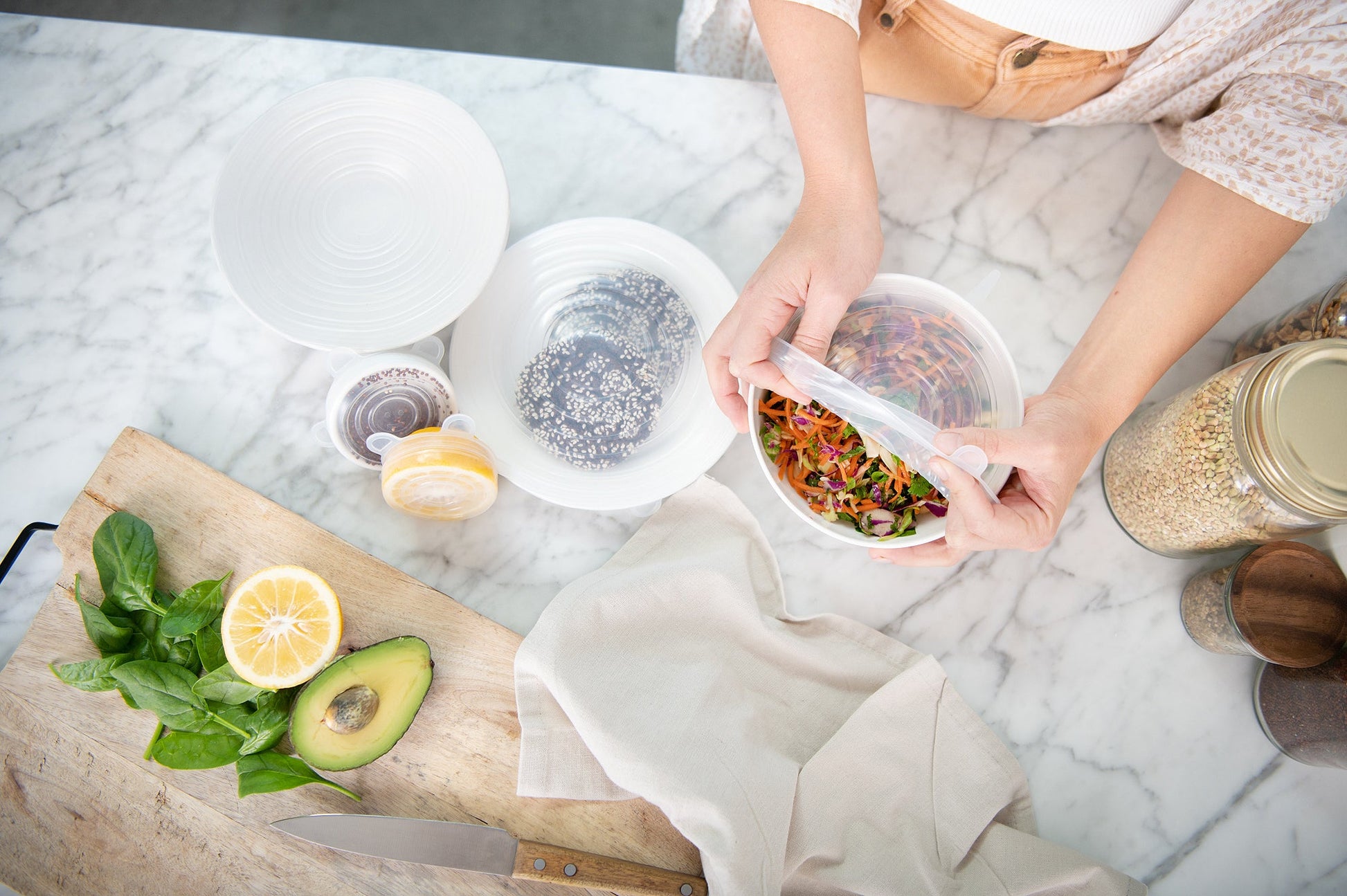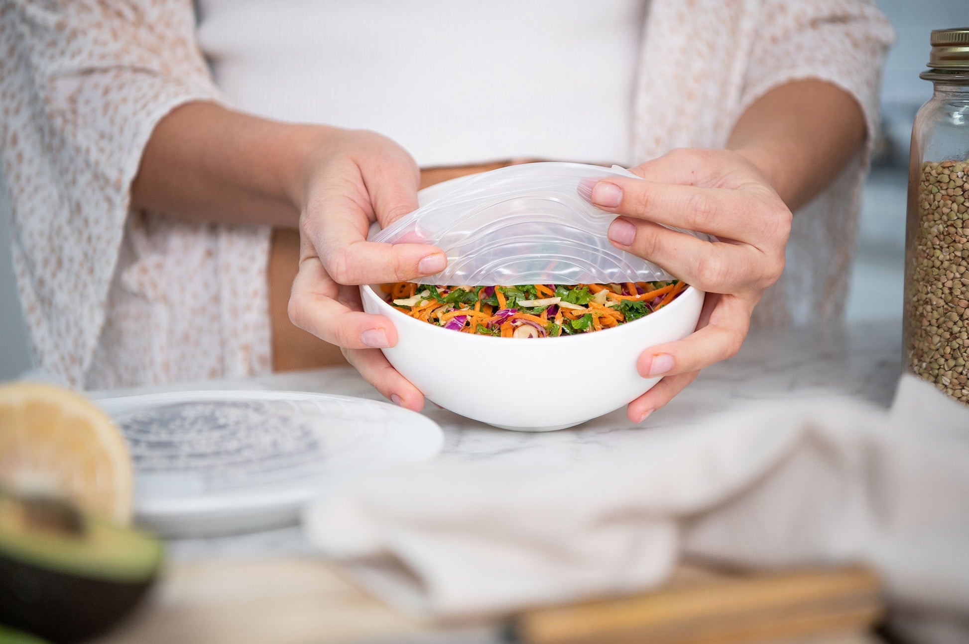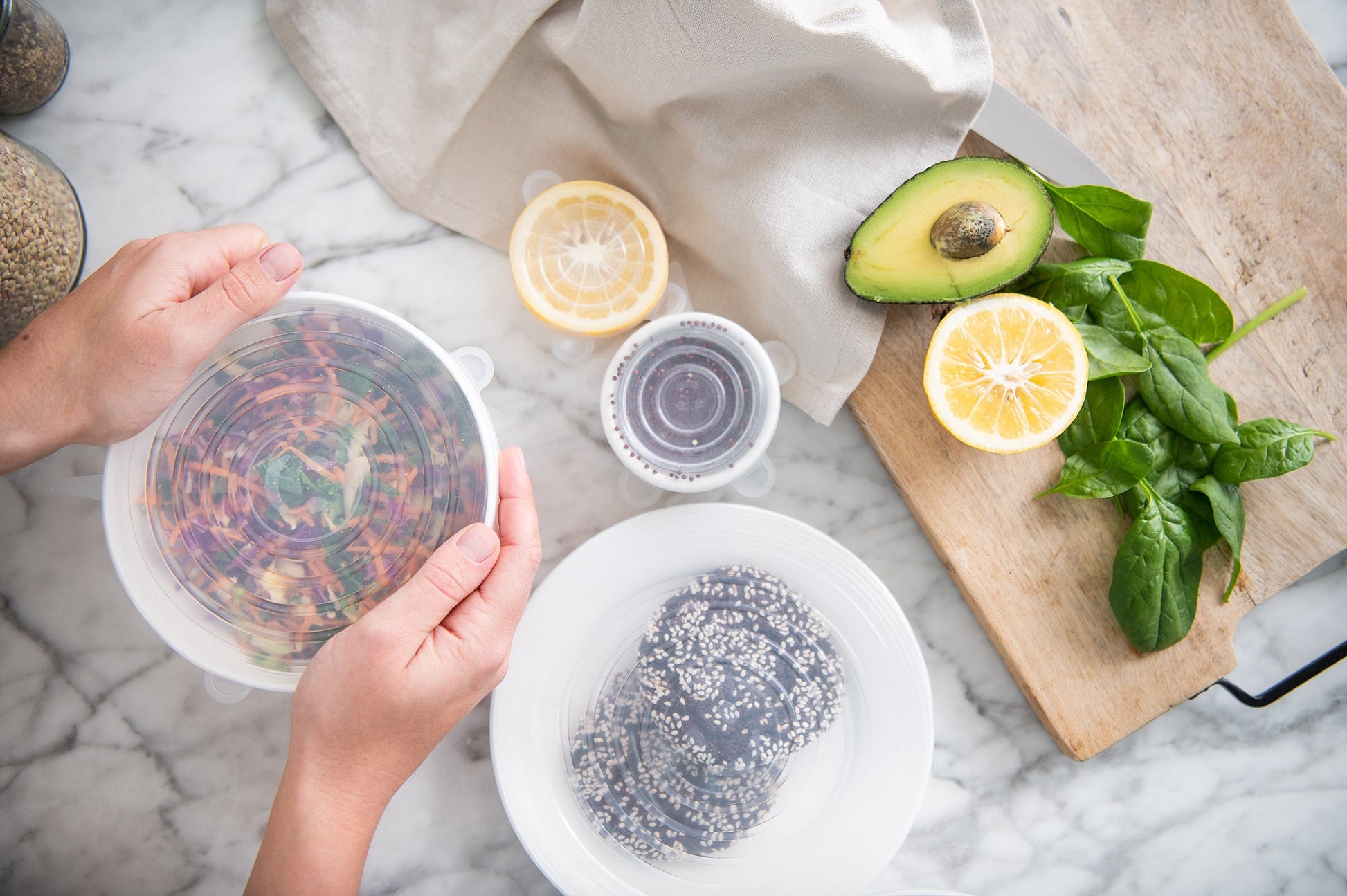 These Silicone Stretch Lids are an easy way for you to cover food, keeping it fresh in the fridge or when you are off to that BBQ. Great reusable food covers for half-cut fruit, veggies, bowls, and plates. They are long-lasting and can be sterilised in the dishwasher. Also available separately as the Silicone Stretch Lids - Regular for plates (without the smaller silicone covers that are in this multi pack).