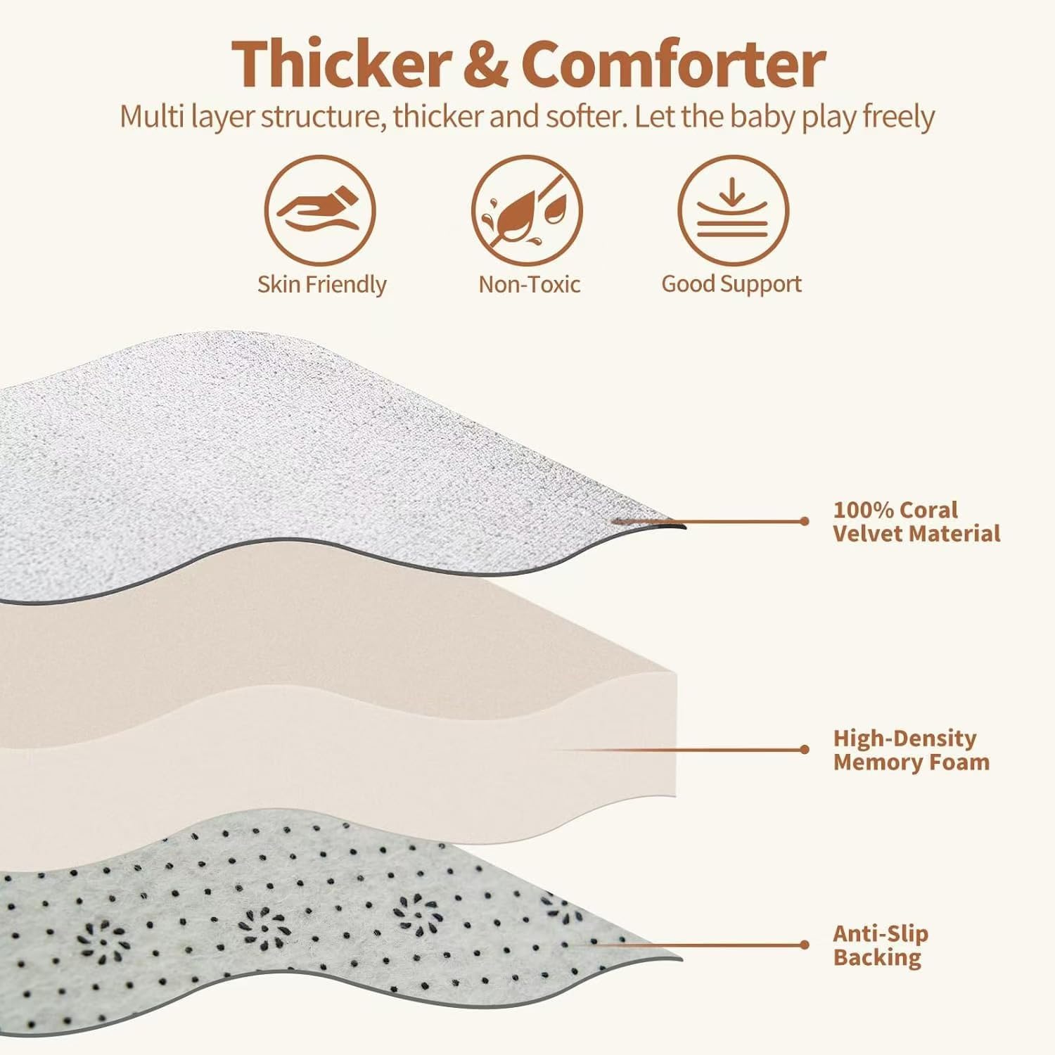 Introducing the Baby Play Mat for Floor, a thick memory foam tummy time mat designed to provide a safe and cozy play area for your little ones. This large non-slip crawling mat is perfect for toddlers, infants, and even as a yoga mat.