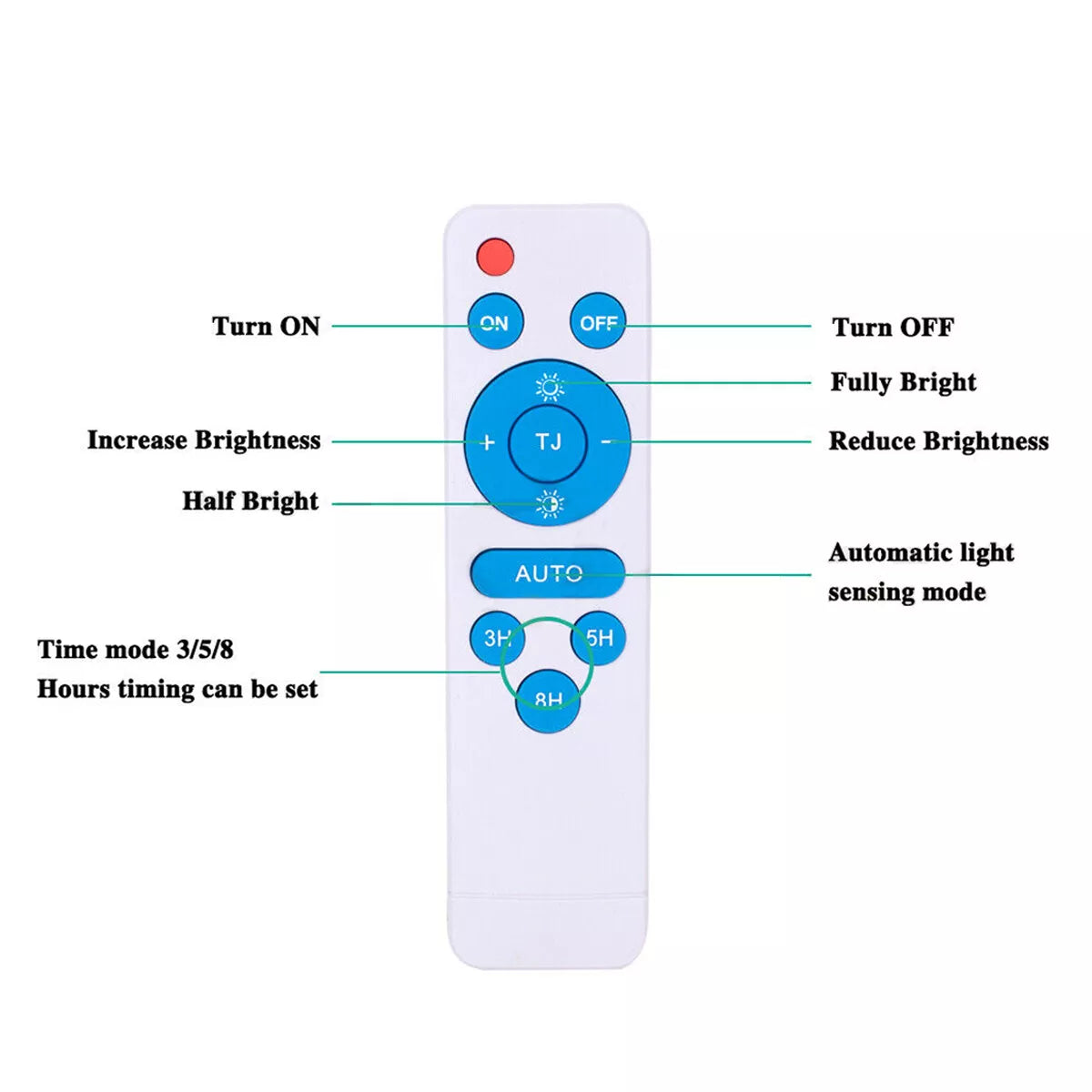 - Function Modes: Auto Light Control / Timer / Brightness Adjustment / Manual Switch