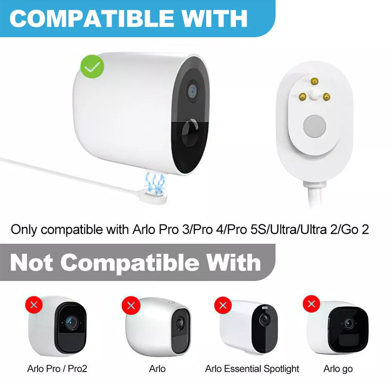 -Continuous Solar Power for Arlo Cameras:Premium solar panel specially designed for Arlo Pro 4/Pro 3/Ultra/Ultra 2/Pro 3 Floodlight, with magnetic charging connector. The solar panel can obtain uninterrupted and stable power from the sun, and support your Arlo cameras to operate day and night. (Note: Not Compatible with Arlo/Arlo Pro/Pro 2/Arlo Go/Arlo Essential Spotlight).