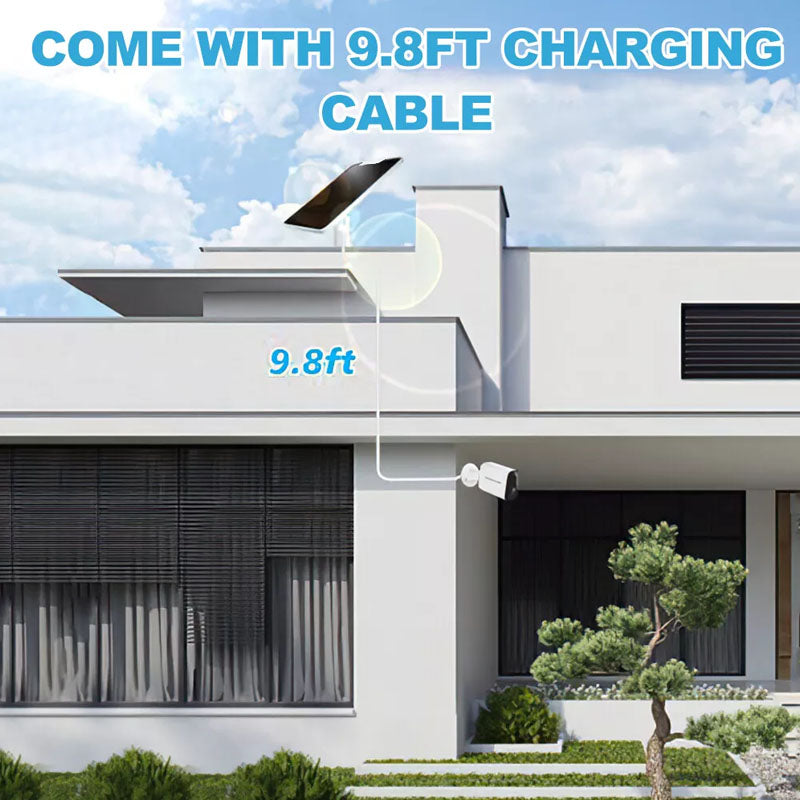 Please Note: The charging efficiency depends on the intensity of the sun's rays and the speed at which the outdoor cameras consume power.