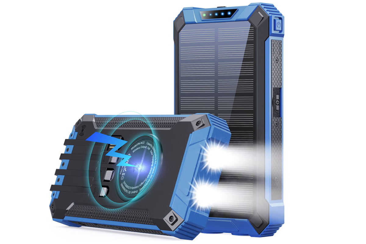 Power Bank Wireless Charger 20000mAh Built in 4 Cables and Dual Flashlights Fast Charging Power Bank Six Outputs Three Inputs Solar Portable Charger Compatible with All Mobile Devices