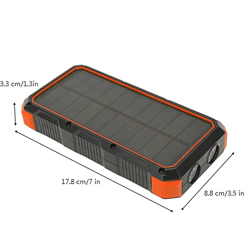 - Dual USB Output: Features dual USB ports for simultaneous charging of two devices with over-current and over-discharge protection.