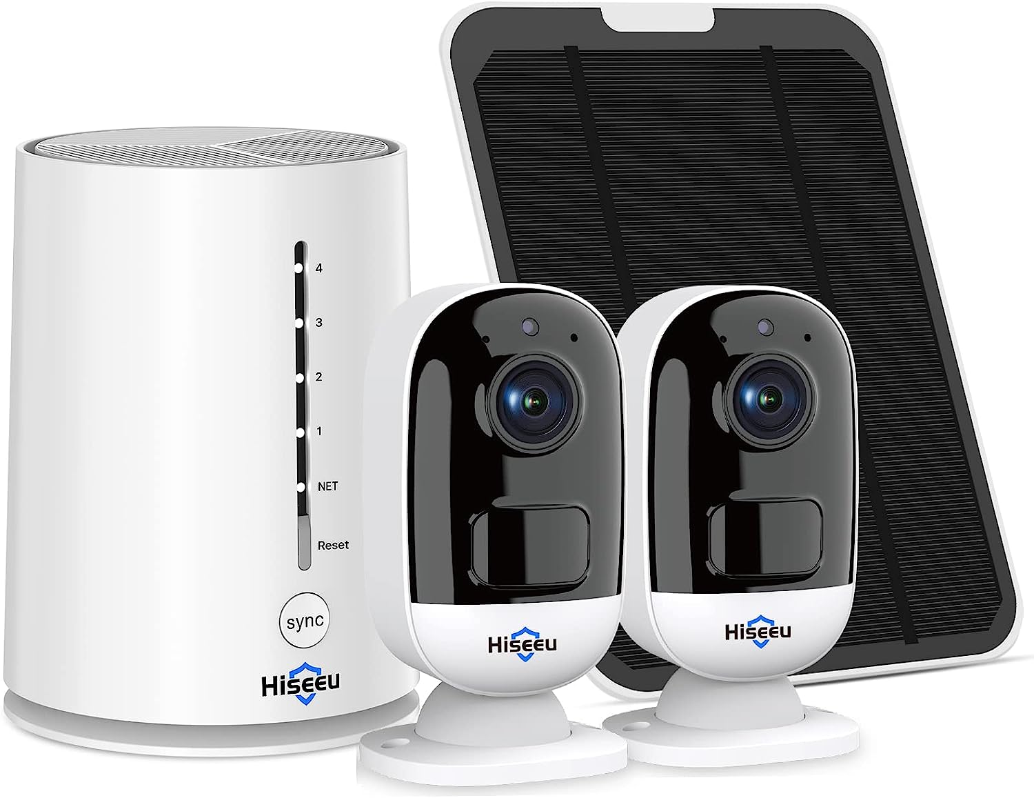 Hiseeu Wireless Outdoor Security Camera System - 3MP, 365-Day Battery Life, Smart AI Human Detection, 2-Way Audio, Solar Panel, Wired-Free Camera with 32G SD Card & Alexa Compatibility