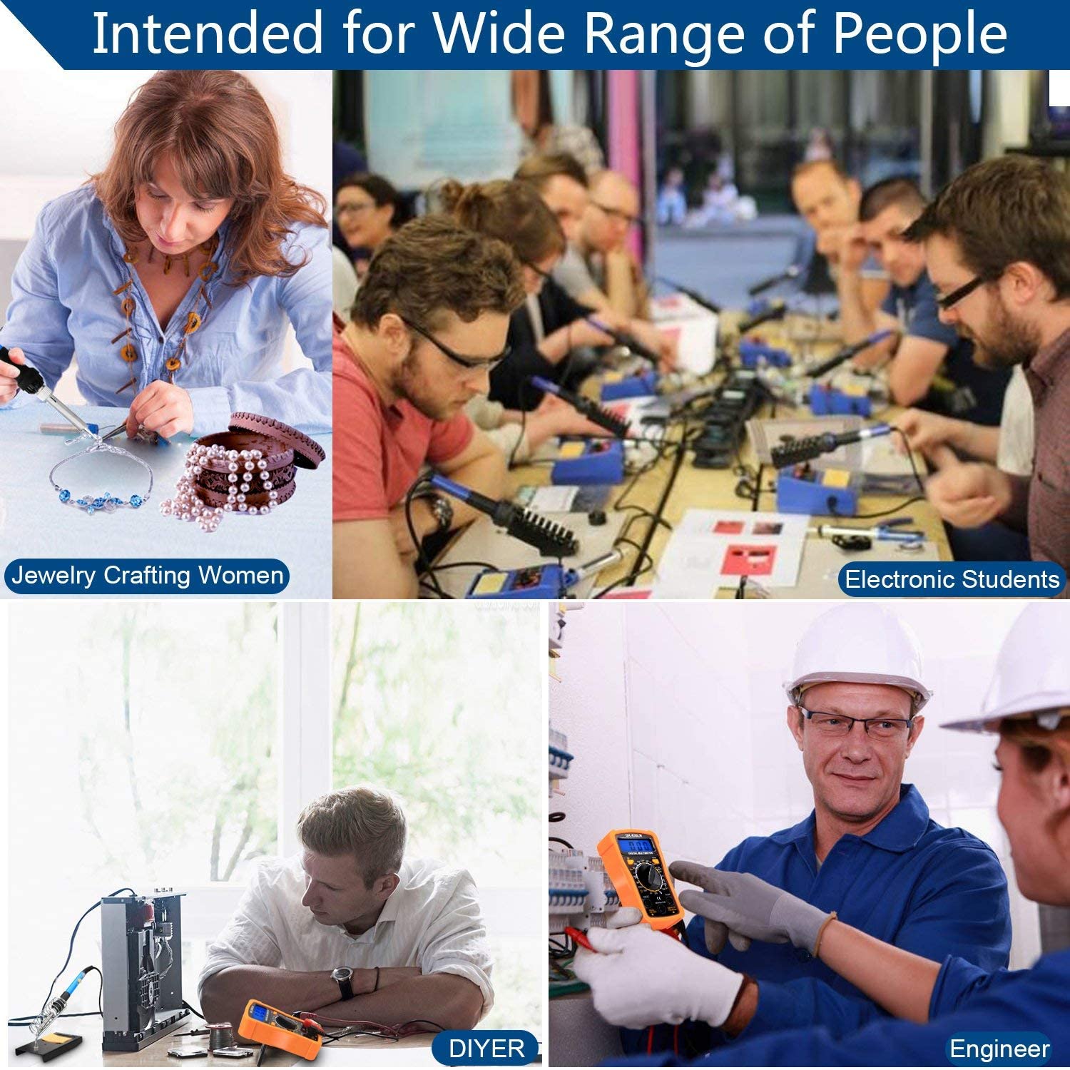 - Application: FCC and RoHS certified soldering iron and multimeter, free from toxic elements. Ideal for DIYers, electronics repairs, circuit boards, and welding tasks.