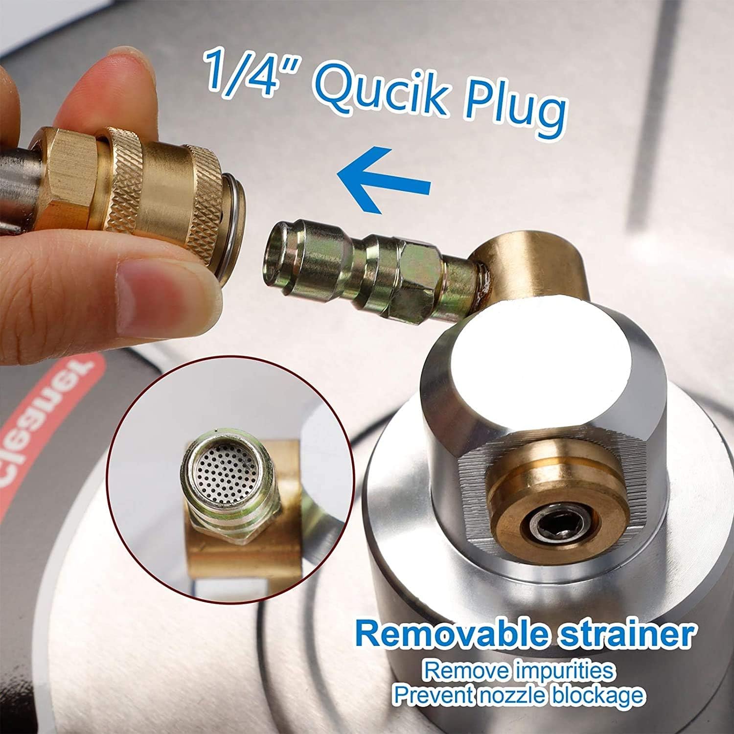 -High Quality & Good Compatibility: Heavy duty bearing and durable stainless steel construction can be used for a long time. A filter is built into the entrance to prevent the blockage of impurities. 1/4" Quick plug. Easy to connect with included pressure washer lance or other 1/4" quick connect fitting. The Surface Cleaner can be used with most gasoline pressure washers.
